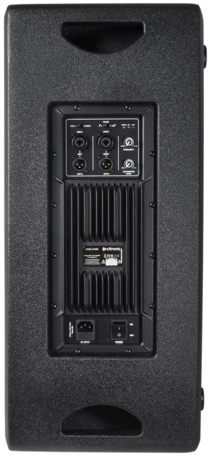 Controls Flat/boost, phase switch, frequency, subwoofer level