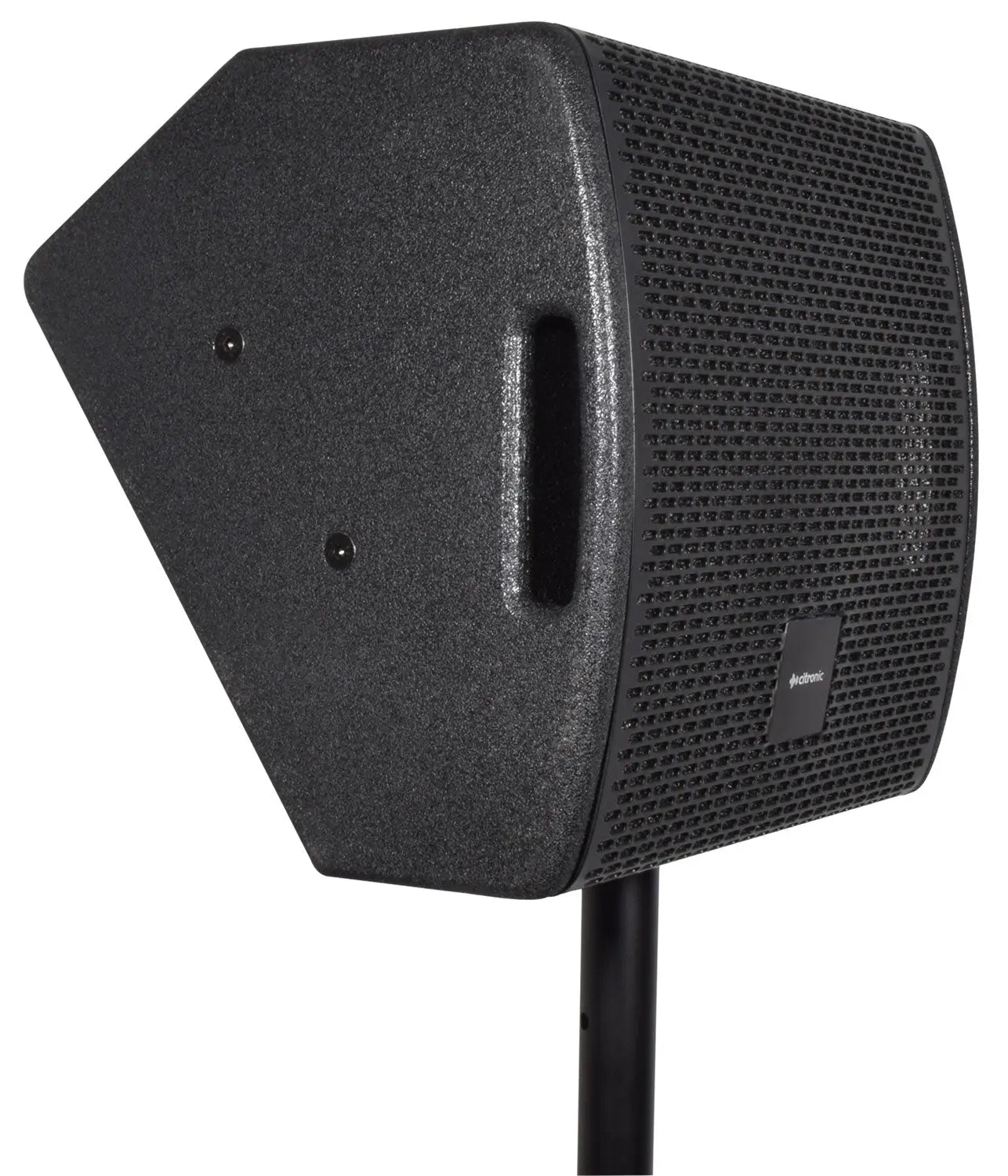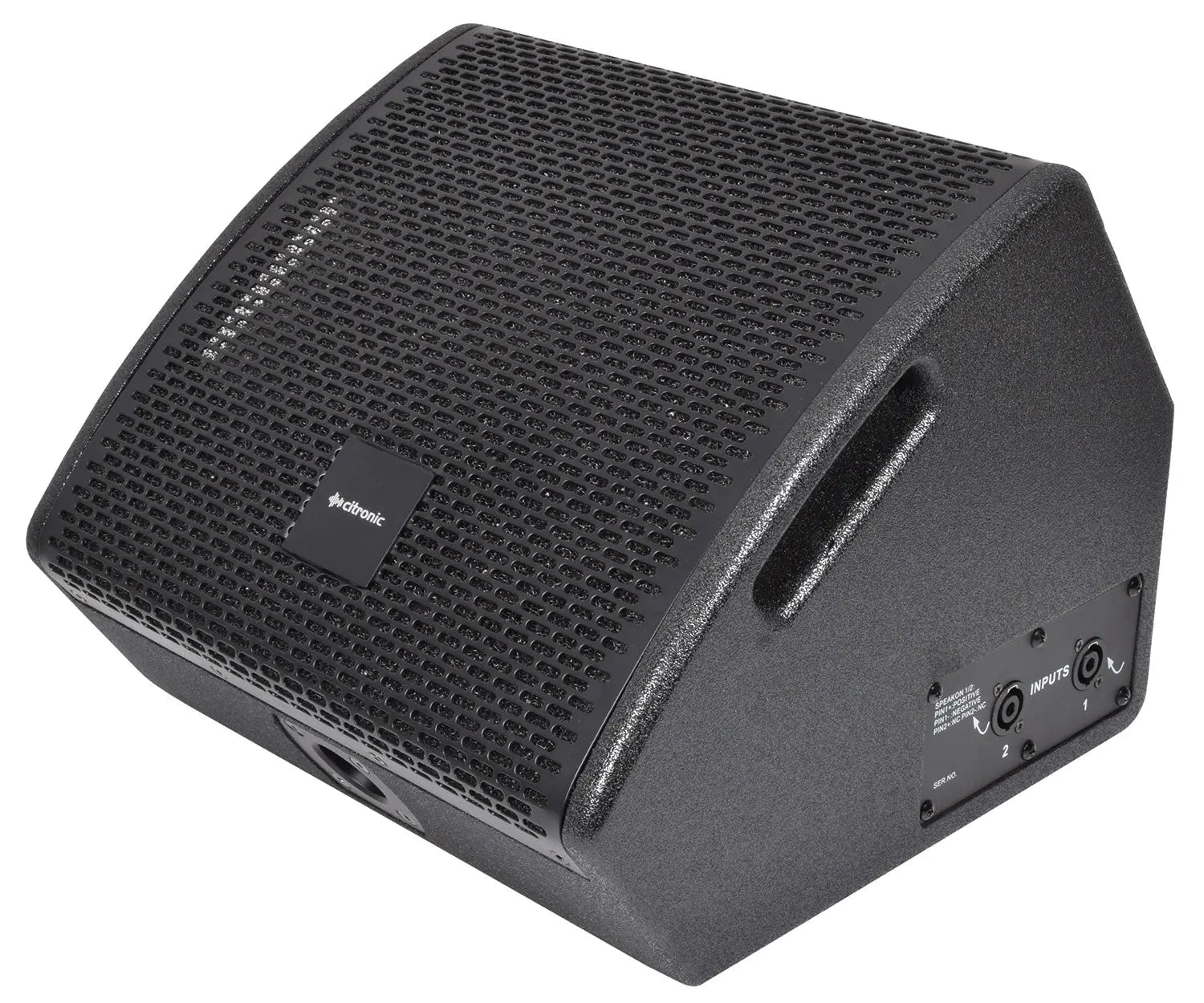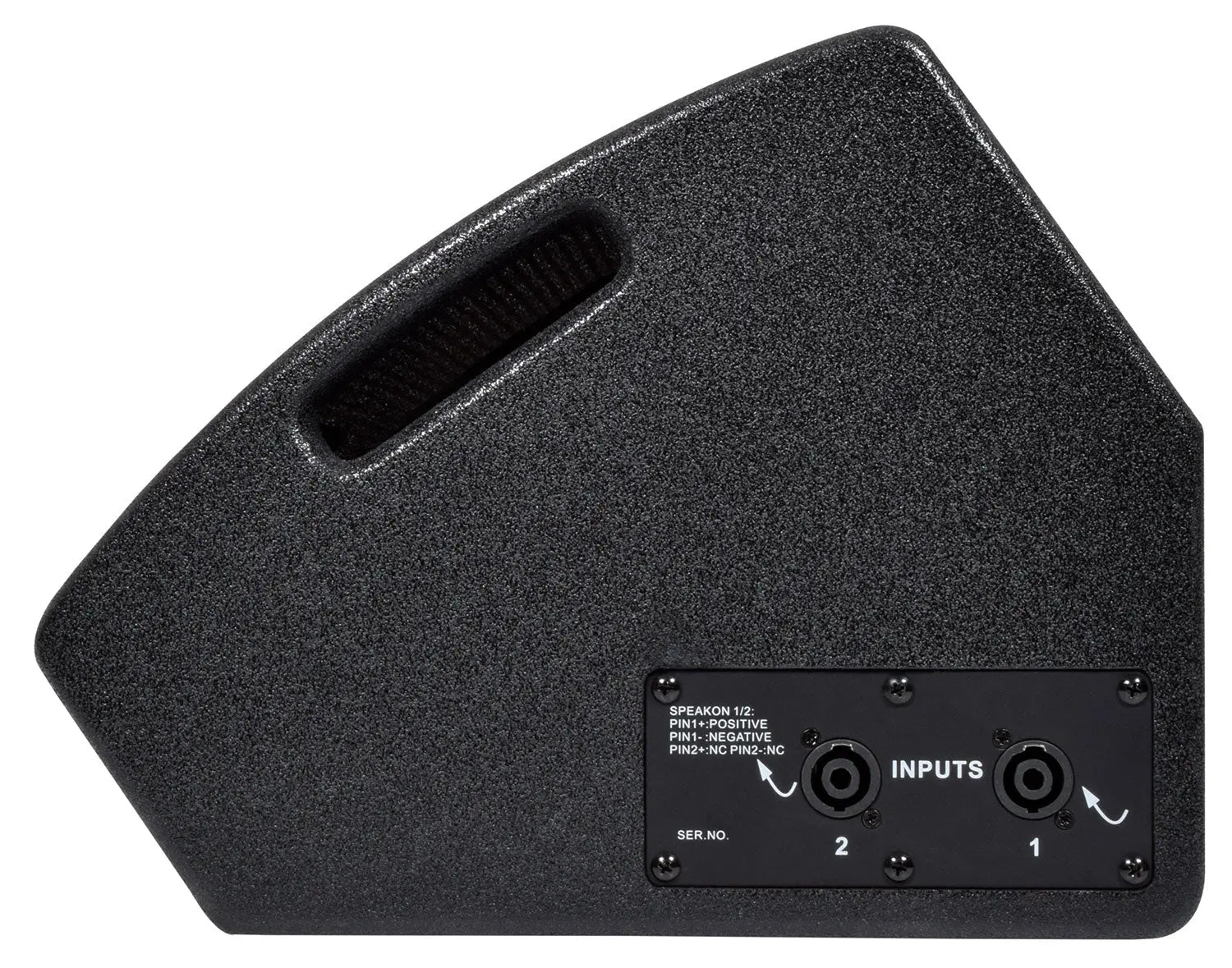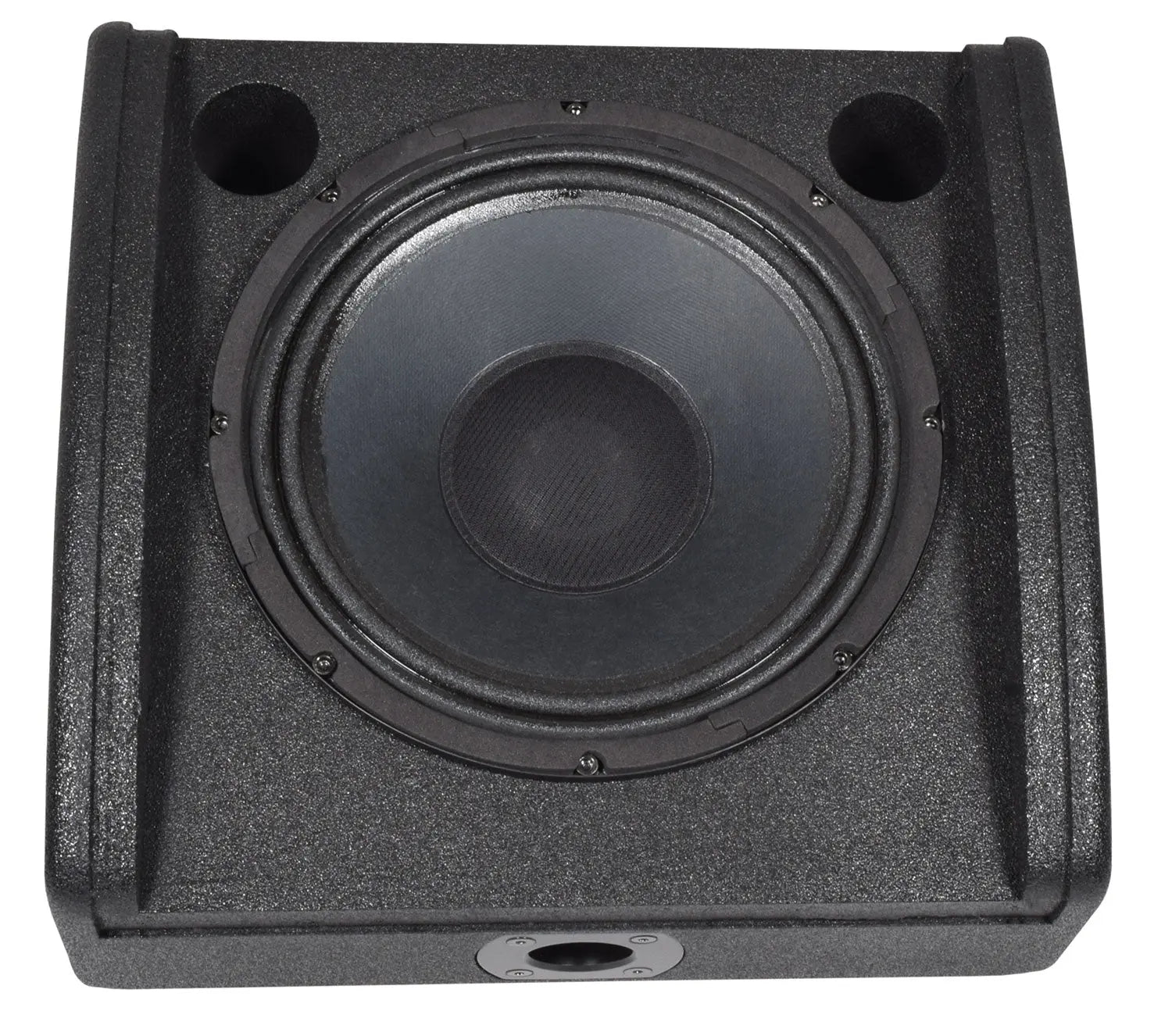 Passive wedge speaker in a durable, texture coated plywood cabinet with minimal footprint. The main driver delivers punchy low frequencies with the help of 2 bass ports and a concentric titanium tweeter is mounted within the main driver for perfectly aligned, sparkling high frequencies. An arched powder-coated steel grille provides heavy duty protection from the rigours of stage performances and forms 2 side handle holes for easy portability. A pair of twist-lock SPK connectors are wired in parallel to accept input from an amplifier and enable connection onto a further passive speaker or monitor if required. The compact size and high power handling means that this is a very capable unit for stage foldback but can equally serve as a compact PA speaker, thanks to its 35mm pole-mount socket and M8 flying points.