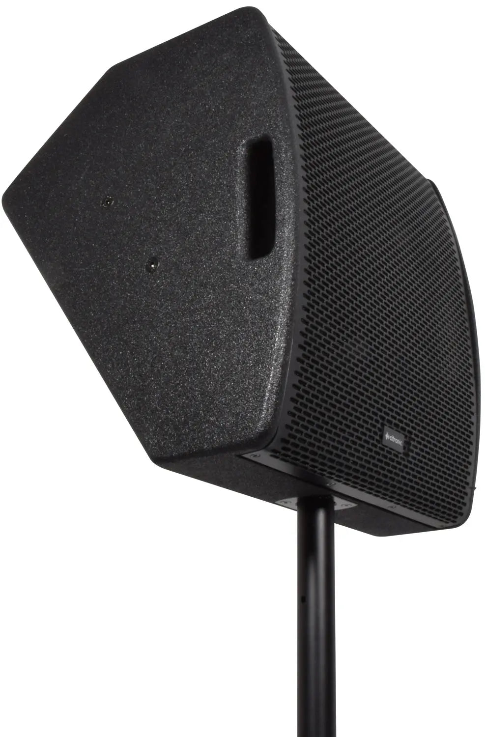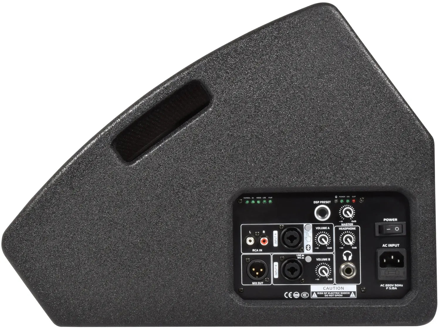 Active wedge speaker in a durable, texture coated wooden cabinet with minimal footprint. The main driver delivers punchy low frequencies with the help of 2 bass ports and a concentric titanium tweeter is mounted within the main driver for perfectly aligned, sparkling high frequencies. An arched powder-coated steel grille provides heavy duty protection from the rigours of stage performances and forms 2 side handle holes for easy portability. Powered from its inbuilt class-D amplifier, each wedge has enough output to deliver clear sound quality in high SPL situations and is even serviceable independently as a compact PA cabinet, thanks to the 35mm pole mount socket and M8 flying points. A DSP section provides 5 different EQ profiles to accurately match the program material and sound environment. In addition to a mic/lin input and separate line input, the CM-series wedges also have a Bluetooth® receiver, which makes it ideal as a musician's practice amplifier. Surprisingly powerful in such a compact enclosure, this speaker offers high quality sound output with flexible options for stage foldback, keyboard and e-drum amplification.
