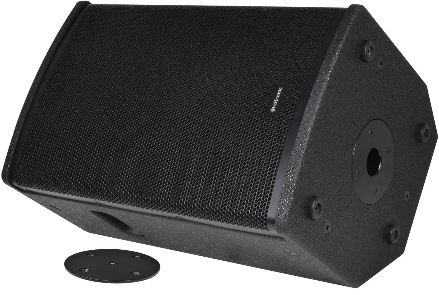 Premium full-range passive speaker cabinets with a polyurea coated wooden enclosure and powder-coated steel grille. A high power-handling main driver and efficient titanium diaphragm HF compression driver combine with the tuned enclosure to deliver a balanced output of all frequencies. The rear panel has 2 parallel inputs for Speakon connection, also enabling linking onto additional speakers. Each cabinet has 2 side handles and a 35mm pole-mount socket for stand mounting. The rear of the cabinet has 2 different bevels for angled placement at ground level or for suspended arraying, multiple M8 flying points are inset on each cabinet. Recommended for use with Citronic PLX, D and H-series amplifiers for a wide range of professional high power sound reinforcement situations.