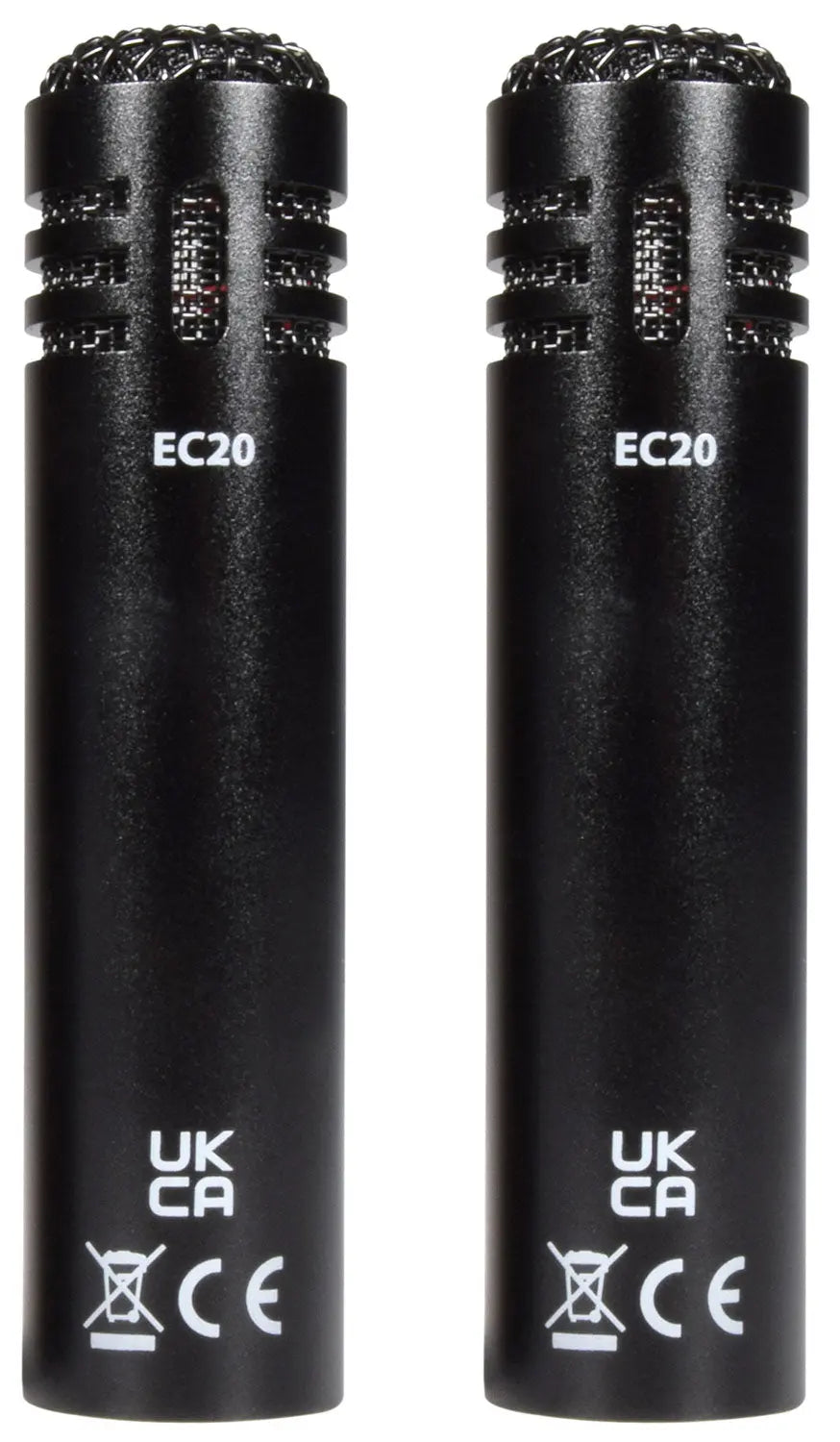 A pair of miniature cardioid condenser microphones with compact dimensions and ultra-high sensitivity. Applications include recording in stereo, overheads for drums and drop mics for chorus sections.