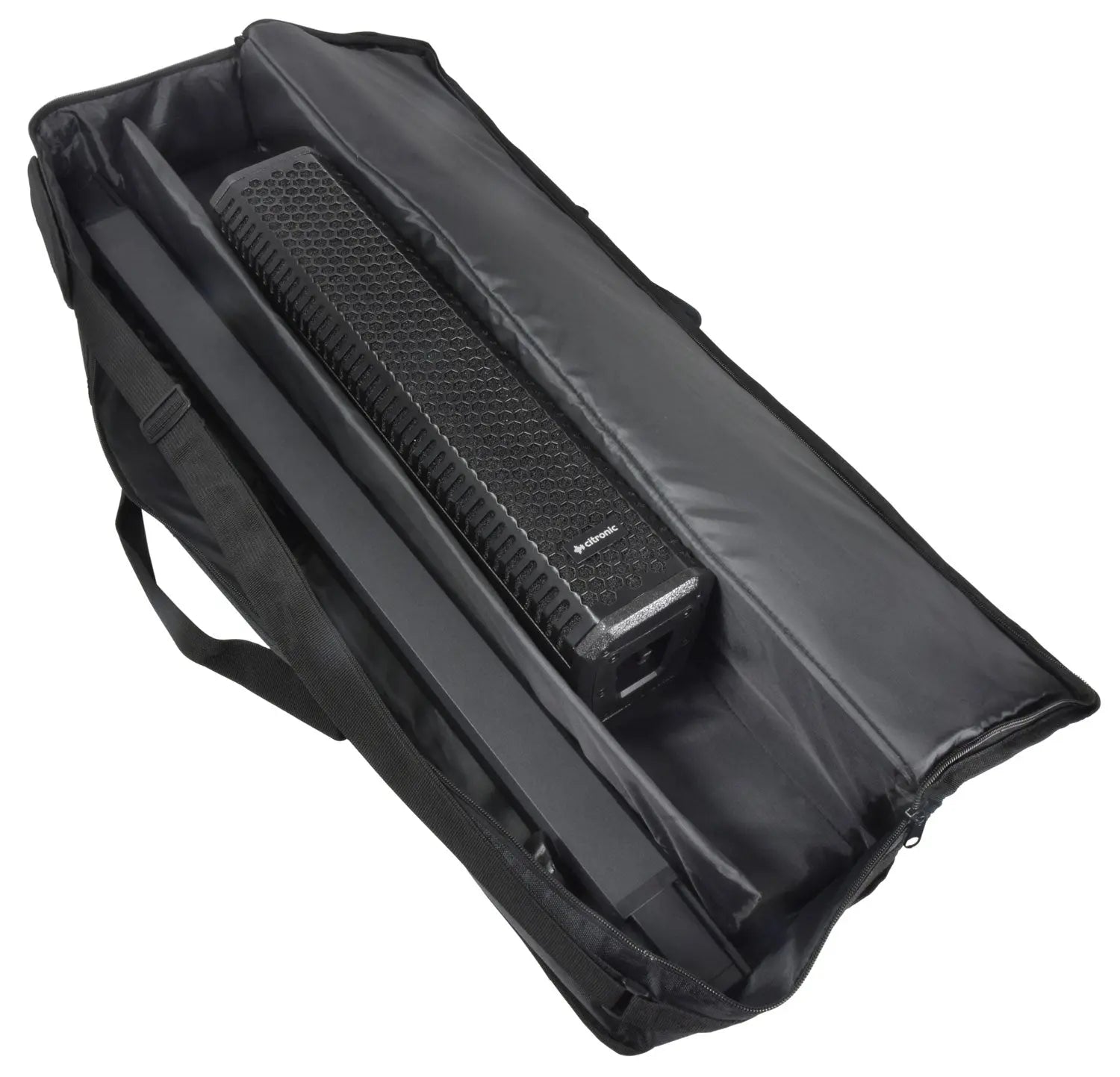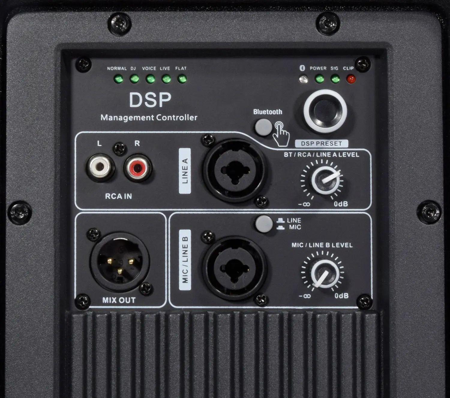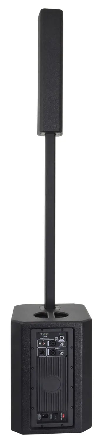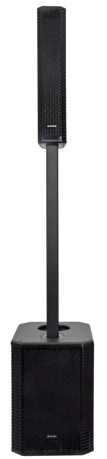 Neolith is a self-contained active sub & column speaker system that delivers superb sound quality for medium to high volume PA applications. Maintaining a minimal footprint, the compact sub cabinet is loaded with a high power 10" low frequency driver, and is also home to the powerful class-D bi-amp module. For mid and high frequency reproduction, the column speaker has a quartet of high power full-range drivers, which have Neodymium magnets to maximise response and efficiency at these frequencies. Sub and column are assembled using a specially-designed mounting pole, which also serves to connect the column speakers to the amplifier output. This makes setting up and breaking down a matter of seconds for mobile work. The amplifier is also governed by a DSP circuit, offering 5 distinct tonal profiles that may be selected for different sound duties. Two input channels can each accept a line input with one switchable to Mic level, with the other also serving as an input for the inbuilt Bluetooth receiver. Convenience and ease of use are the key benefits of Neolith, providing power and great sound quality without fuss or frustration.