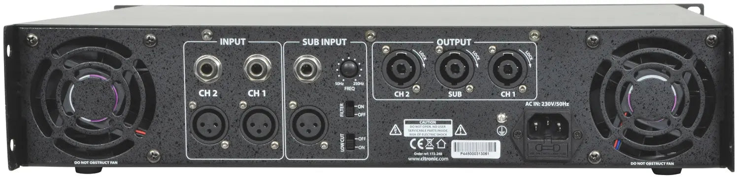 2.1 power amplifiers with 2 channels for mid-top cabinets and a single high power sub output with integral active crossover. Designed as a cost effective and efficient solution for bi-amplified sound systems where subs and top cabinets are run together from this single amplifier.