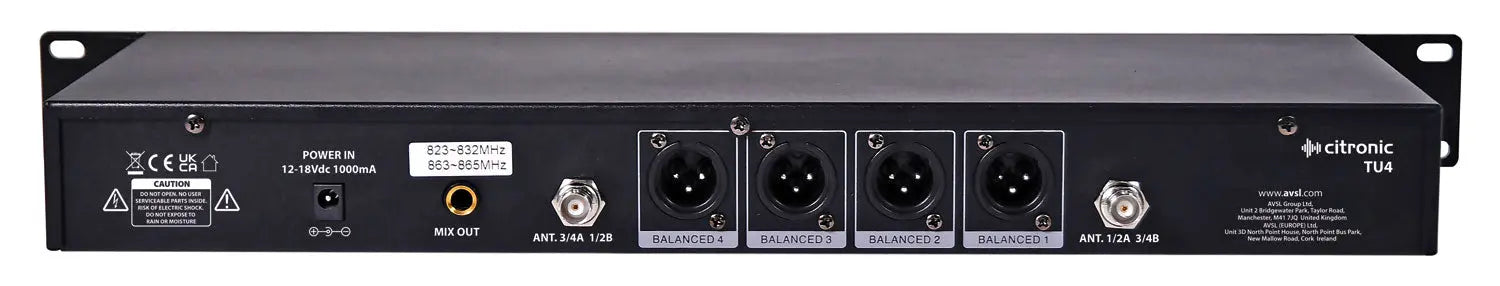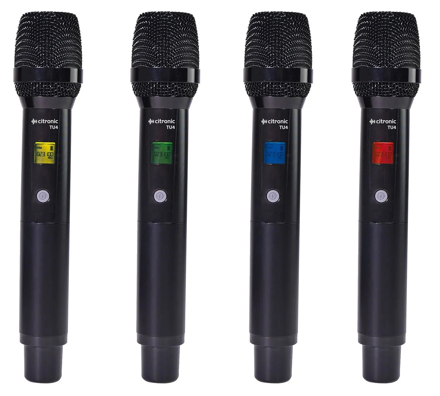 True diversity UHF wireless microphone system with 1, 2, or 4 individually programmable channels that sync to each transmitter to set the carrier frequency, EQ settings, transmission power, and even the display backlight colour for identification. Transmitters are available as either rugged handheld microphones with a high-quality dynamic capsule in a full metal housing or as a compact bodypack with a choice of neckband or lavalier microphones, all with fully balanced signal connection. Twin BNC antennas can be connected at the rear of the receiver or to the front panel when 19" rack-mounted using the supplied BNC extension cables. Each channel is tuneable within the license-free UHF and regulated duplex gap bands, arranged in 8 groups of 8-16 carrier frequencies. Both receiver and transmitter settings are programmed via a front panel full colour TFT display with a rotary encoder for parameter adjustments. Each channel has a further backlit display that corresponds to the display on each transmitter and sync's wirelessly via an IR connection, avoiding the complication of multiple controls on each transmitter. For uncompromising wireless performance, the TU-series has been designed to provide a reliable and adaptable system for stage performances, conferences, theatrical productions and other vocal duties.