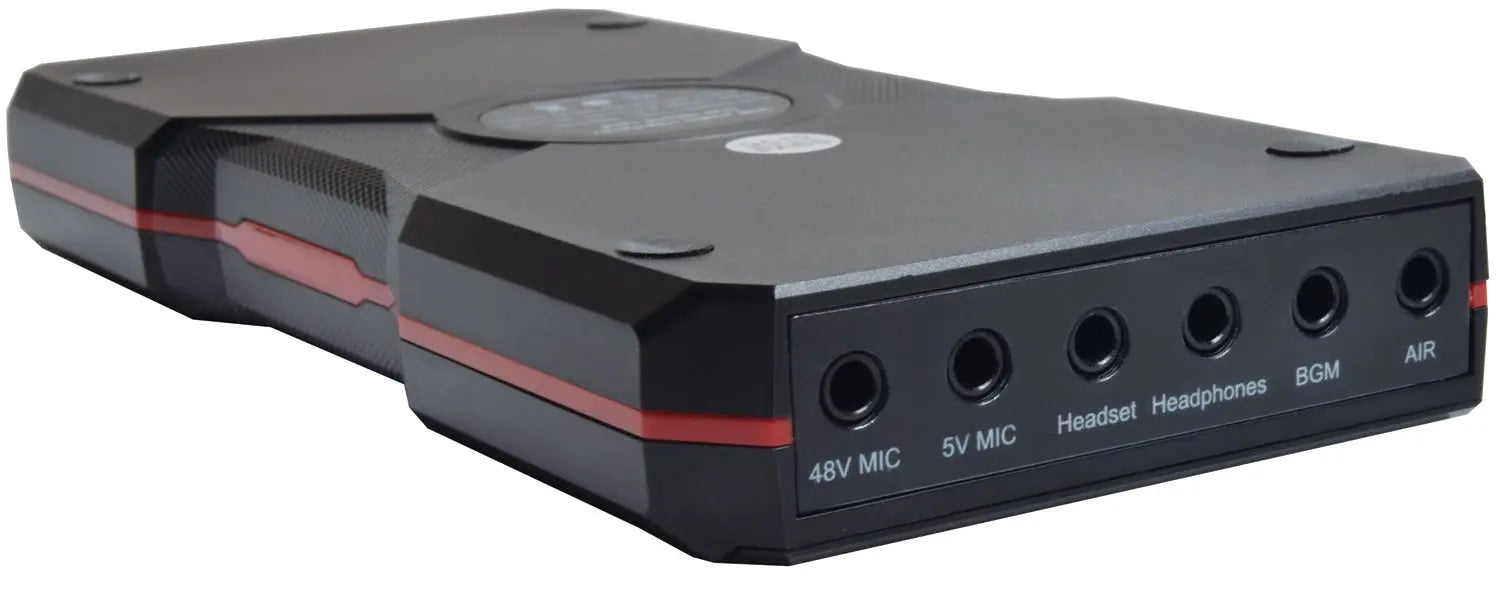 3.5mm sockets for microphones, headset, phones, BGM and AIR