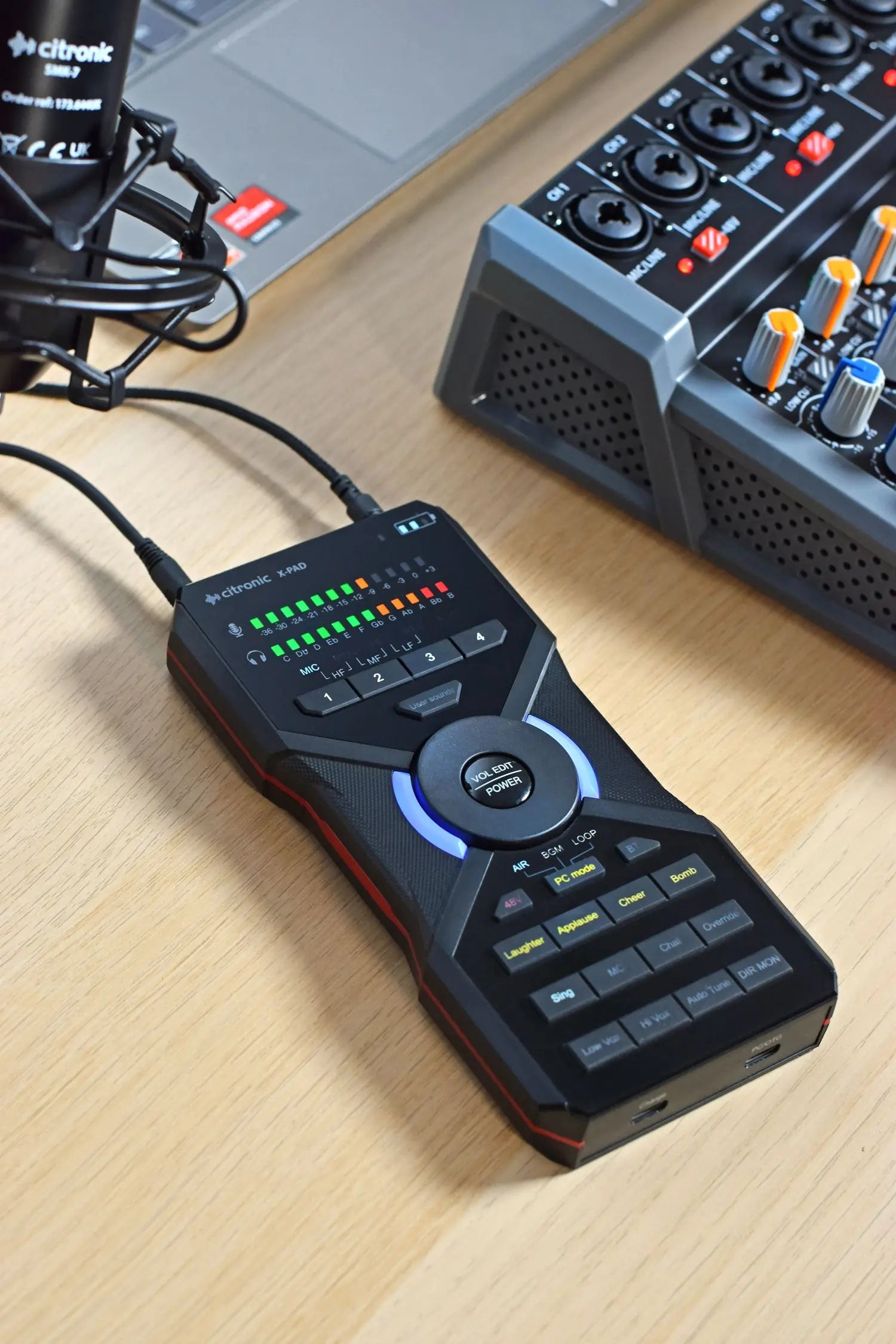 X-PAD brings digital sound recording and studio quality effects within reach of podcasters, mobile social media, and on-line gamers in the form of a rechargeable, pocket-sized audio tool. USB-C connection to a smart phone or laptop computer lets you record with professional features such as EQ tone controls, reverb & echo effects, pitch change and auto-tune for singers. Multiple input/output options also mean that this amazing gadget can lend itself to almost any scenario.