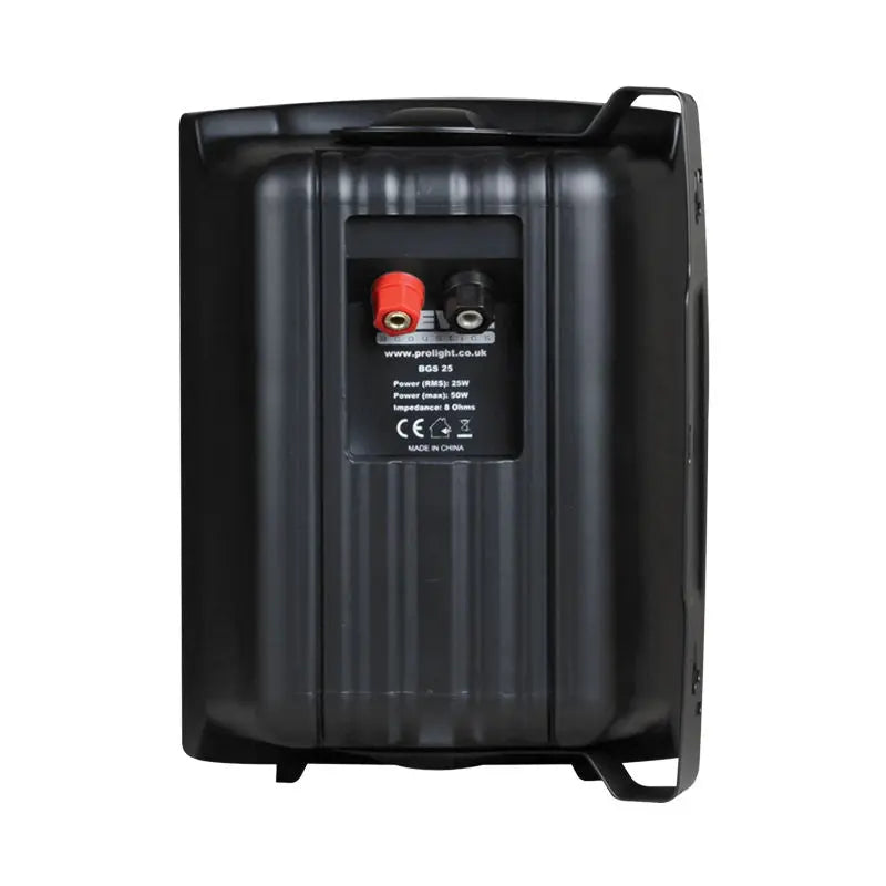 These background music loudspeakers feature ABS enclosures and sturdy metal grilles. They are suitable for free standing or wall mounting via the included adjustable pivot fixing bracket allowing horizontal or vertical installation. The trapezoidal design allows for the enclosures to be mounted neatly into corners making them ideal for installation into bars cafes schools hotels offices or domestic applications. 3 year warranty 2-way low impedance loudspeakers Robust black housing Supplied with adjustable mounting brackets Supplied in pairs Polypropylene LF Mylar HF
