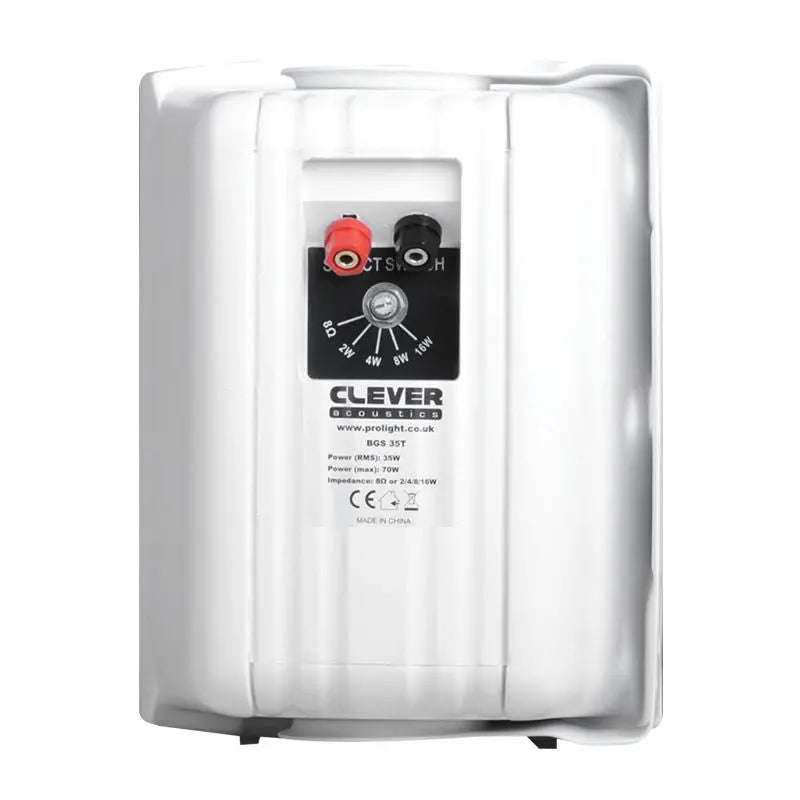 These background music loudspeakers feature ABS enclosures and sturdy metal grilles. They are suitable for free standing or wall mounting via the included adjustable pivot fixing bracket allowing horizontal or vertical installation. The trapezoidal design allows for the enclosures to be mounted neatly into corners making them ideal for installation into bars cafes schools hotels offices or domestic applications. 3 year warranty 2-way 100V line loudspeakers Multiple power taps plus low impedance Robust white housing Supplied with adjustable mounting brackets Supplied in pairs Polypropylene LF Mylar HF