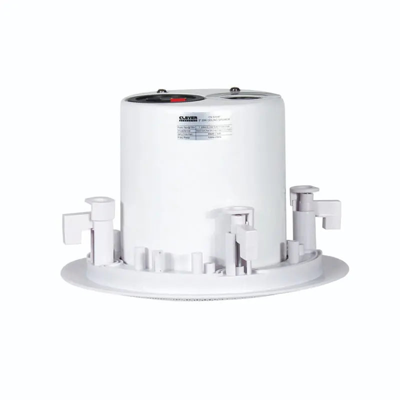 High output ceiling loudspeakers with extended frequency response ideal for the playback of music and speech reinforcement where audio quality is important. The CS HP series utilise a coaxial design complete with HF tweeter for crystal clear high tones plus metal enclosure for enhanced low frequencies. These loudspeakers feature flush mount dog-ear retaining clips and a installation template is supplied making them simple to install. Suitable for either low impedance or 100V line operation. 3 year warranty Coaxial 2-way design delivers a wide frequency response Multiple power taps plus low impedance Rotary power tap Metal grille ABS baffle and metal enclosure Flush mount dog-ear retaining clips for easy installation Spring terminals for simple installation Supplied with template to aid installation 25mm maximum panel thickness