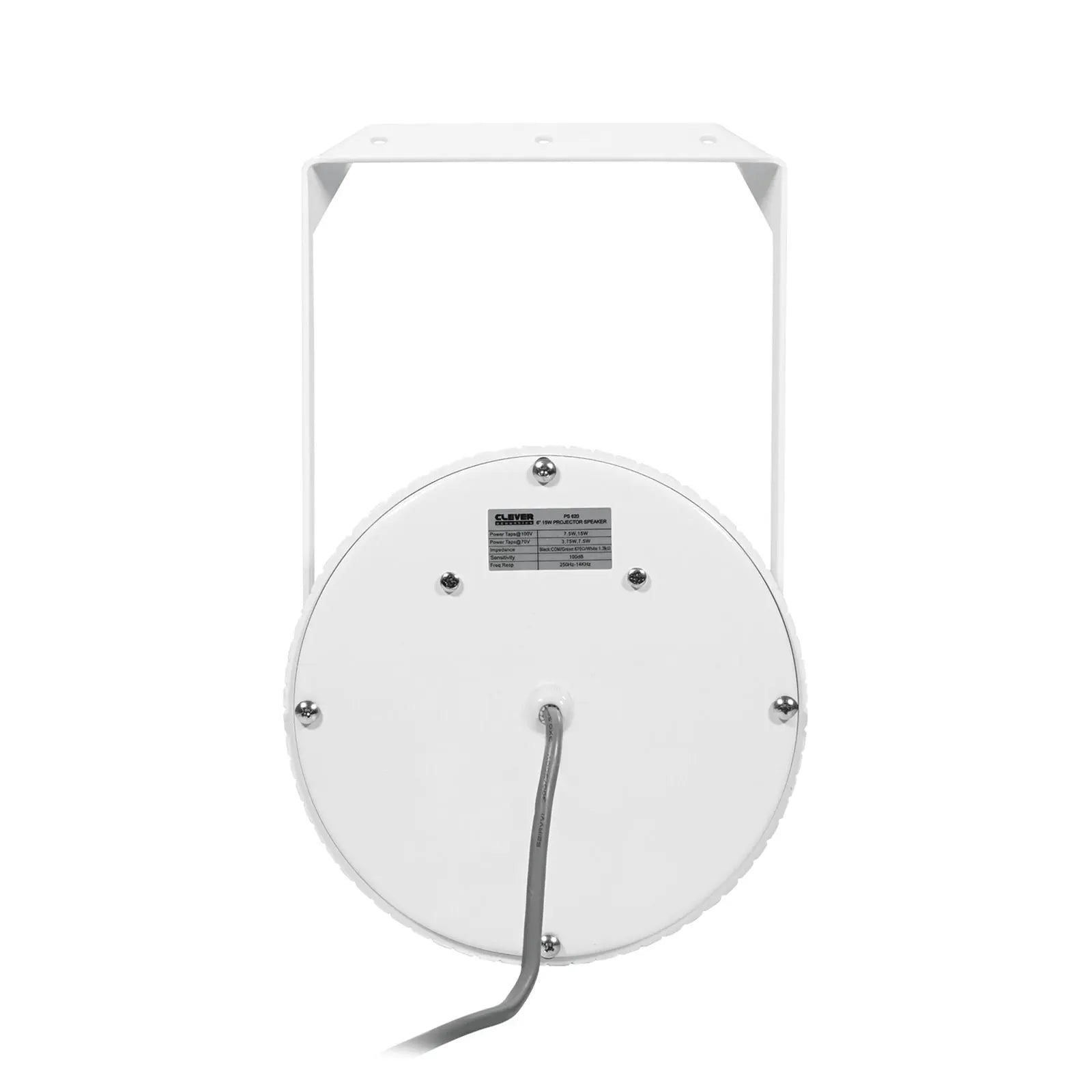 Weather resistant IP44 sound projectors suitable for paging and background music applications. Their weather resistant aluminium construction complete with metal grilles and mounting brackets makes them ideal for installation into public spaces such as sports venues market halls shopping centres and sheltered locations outdoors. 3 year warranty Internal 100V/70V transformer 6" full range driver Multiple power taps Unidirectional dispersion Metal grille and aluminium enclosure Weather resistant construction suitable for outdoor installation in sheltered locations Supplied with adjustable mounting bracket