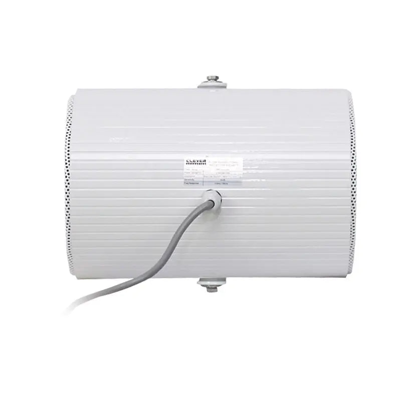 Weather resistant IP44 sound projectors suitable for paging and background music applications. Their weather resistant aluminium construction complete with metal grilles and mounting brackets makes them ideal for installation into public spaces such as sports venues market halls shopping centres and sheltered locations outdoors. 3 year warranty Internal 100V/70V transformer Multiple power taps 2 x 6" full range drivers Bidirectional dispersion suitable for use in corridors Metal grille and aluminium enclosure Weather resistant construction suitable for outdoor installation in sheltered locations Supplied with adjustable mounting bracket