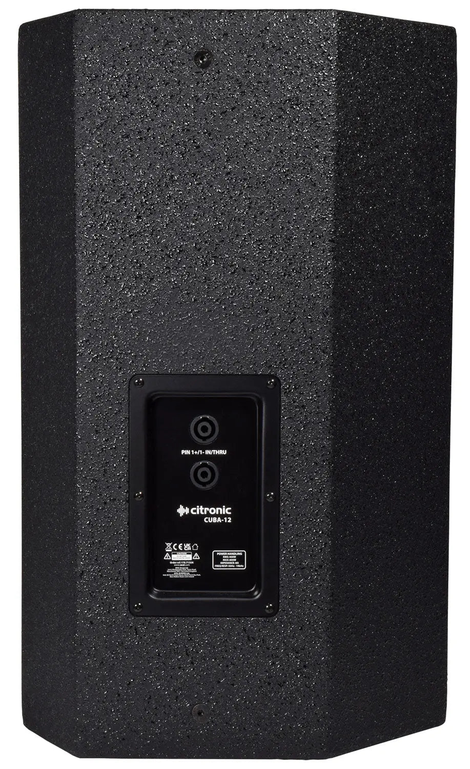 Premium full-range passive speaker cabinets with a polyurea coated wooden enclosure and powder-coated steel grille. A high power-handling main driver and efficient titanium diaphragm HF compression driver combine with the tuned enclosure to deliver a balanced output of all frequencies. The rear panel has 2 parallel inputs for Speakon connection also enabling linking onto additional speakers. Each cabinet has 2 side handles and a 35mm pole-mount socket for stand mounting. The rear of the cabinet has 2 different bevels for angled placement at ground level or for suspended arraying multiple M8 flying points are inset on each cabinet. Recommended for use with Citronic PLX D and H-series amplifiers for a wide range of professional high power sound reinforcement situations.Hard-wearing polyurea cabinet coating Custom designed high power LF and HF drivers 35mm pole mount socket and M8 flying points CUBA-8 CUBA-10 supplied with a U-bracket