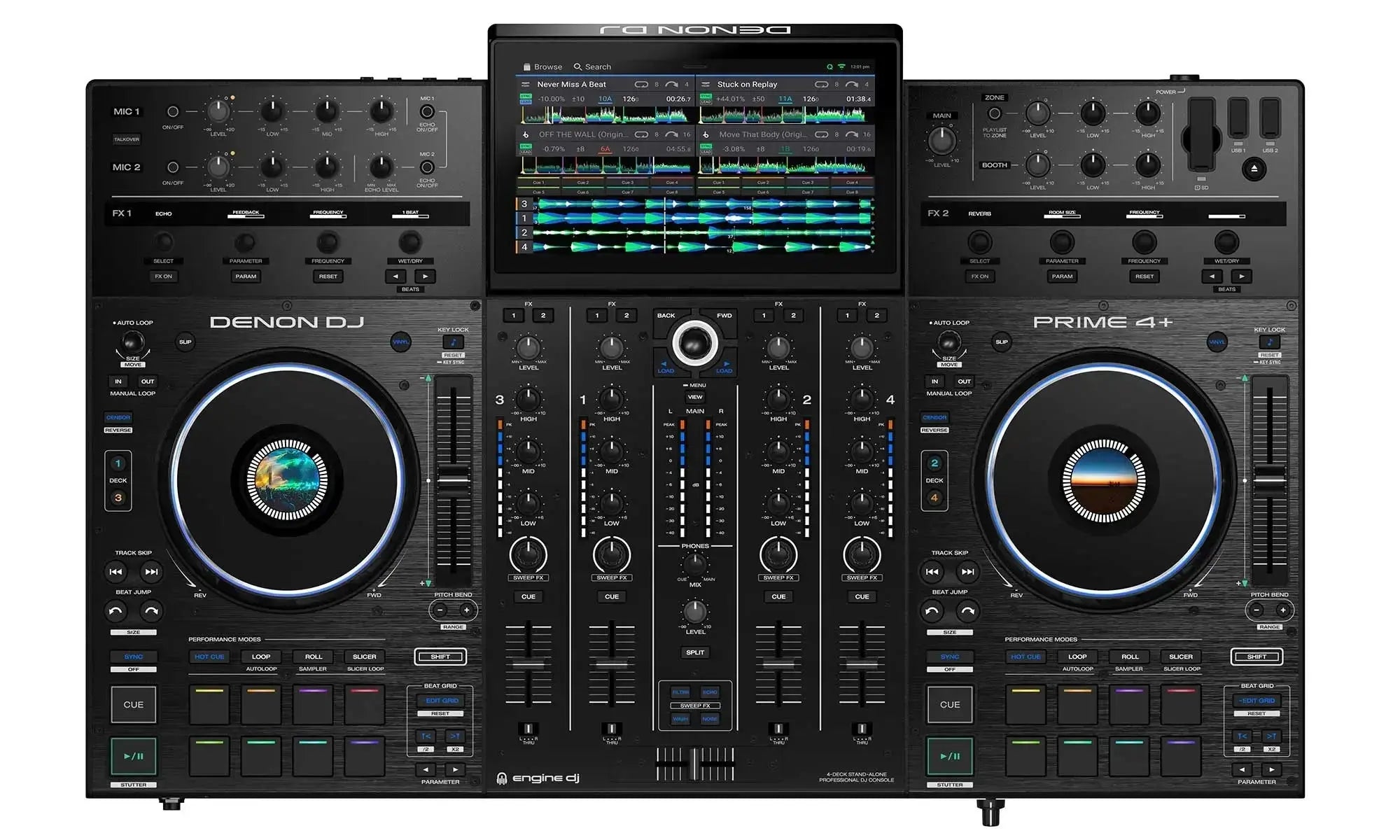 A 4-deck standalone DJ system with a 10-inch HD multi-touch display.