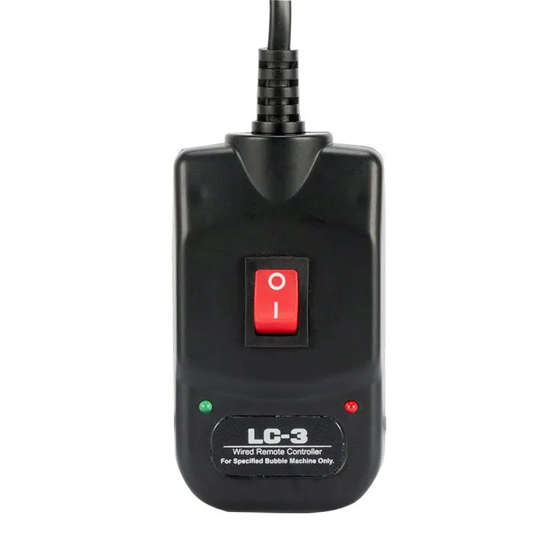 Featuring an intuitive ON/OFF switch on the rear and a convenient wired remote with a 7.6m (25 ft.) cable it's incredibly user-friendly. The durable plastic casing large high-velocity fan and carrying handle make it a robust companion. It accommodates most bubble liquids consumes minimal power (24W) and has a fluid consumption rate of 1 litre every two hours (120V: 20 ml/min 230V: 11 ml/min).