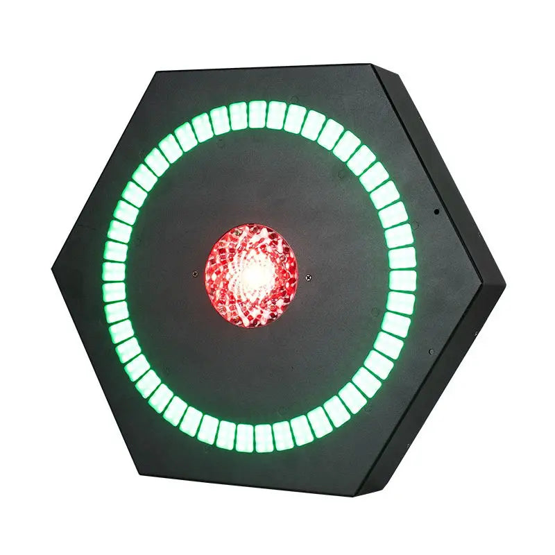 Centre Beam: 1x 40W RGBW Circular Halo: 288x RGB (0.5W 5050 SMD)128 Built-In Programs Cooling System: Convection Cooled Dimming: 0~100% Shutter: 0~20 Strobe flashes per second