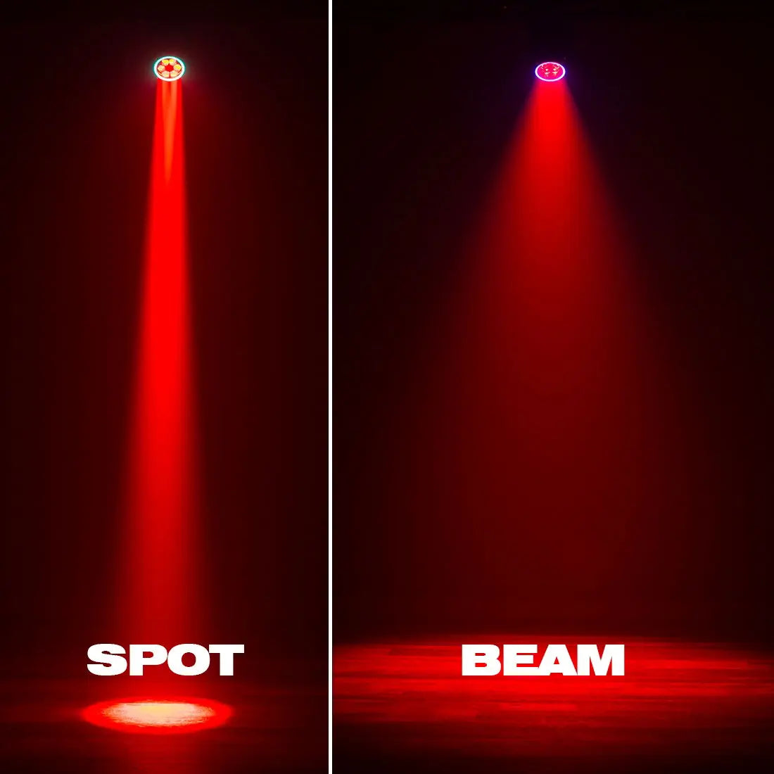 Motorized Zoom: 4 ~ 55° Motorized rotating lens that allows the unit to output a narrow beam of 4° a wide wash of 55° and a kaleidoscopic multi-beam effect Create eye candy effects with LED Ring Variable White Colour Temperatures: 2800K – 8500K Built-in Colour Macros & Effects 0-100% smooth dimming Variable speed strobe effect Fast precise pan & tilt movements