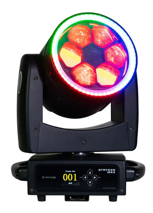 Part of Eliminator Lighting’s Stryker Series of powerful, feature-packed, and affordable moving head fixtures, the Stryker Max is a versatile wash-zoom fixture capable of generating a variety of stunning effects. Compact, lightweight, and easily portable, it is perfect for use by mobile entertainers and event companies as well as for integrators supplying bars, nightclubs, and other entertainment venues.
