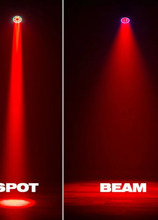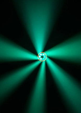 - Motorized rotating lens, that allows the unit to output a narrow beam of 4°, a wide wash of 55°, and a kaleidoscopic multi-beam effect