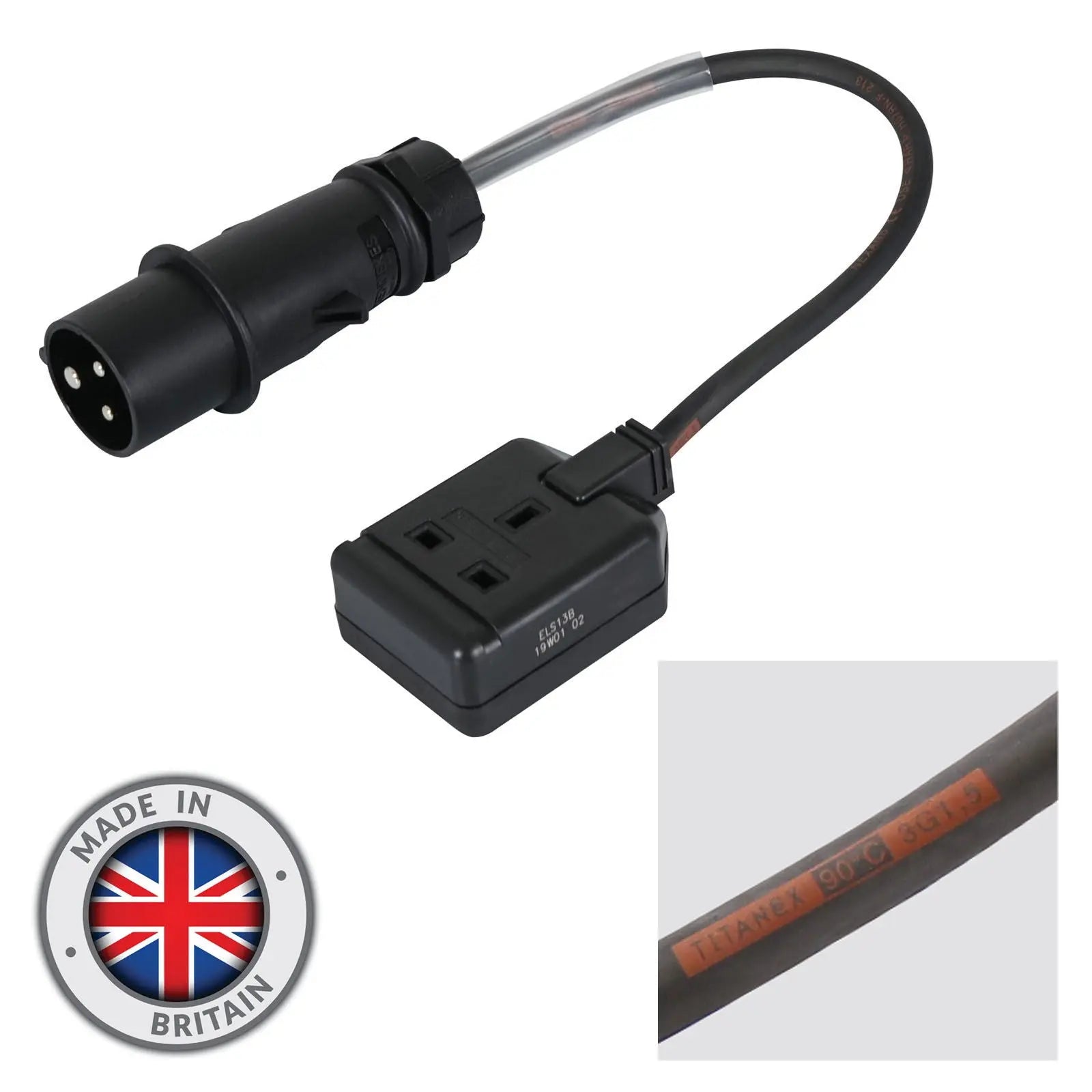 Elumen8 0.35m Mennekes Black 16A Plug to 13A Socket Cable