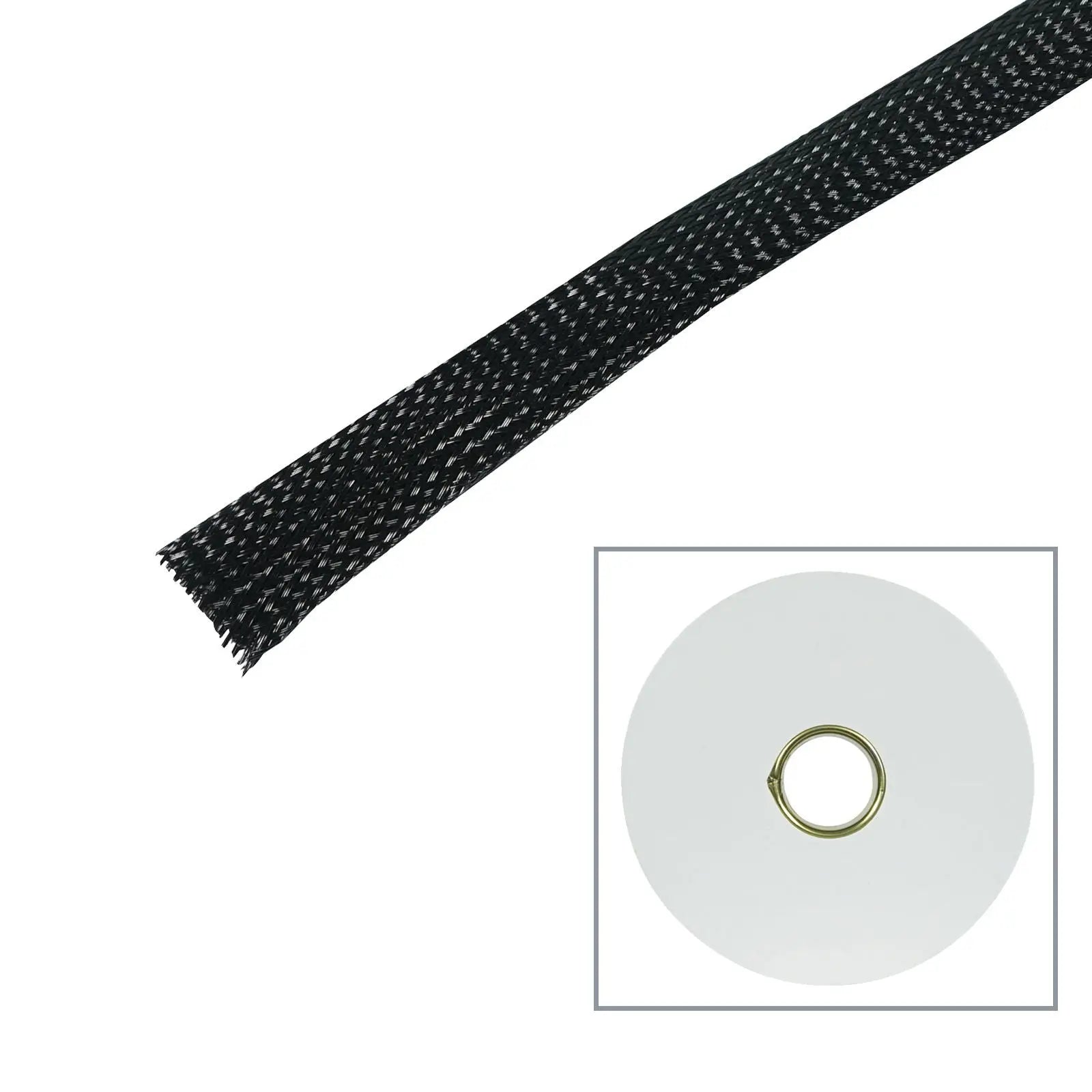 Polyester Expandable Braided Sleeving 19mmPolyester expandable sleeving is standard flame-retardant and offers durable abrasion resistance in a wide range of industrial applications. The open weave construction allows an easy installation on a bundle of hoses and cables even if they have bulky or large connectors. Totally expanded the sleeving can reach at least 1.5 times the initial dimension. The applications these are mainly used for are to cover cables wire harnesses tubes industrial hoses where good mechanical protection is required. Material: Polyester-Standard Operating temperature: -50°C-+150°C Melting point: 240±10°C Flammability: VW-1 Recommended cutting tool: Hot knife