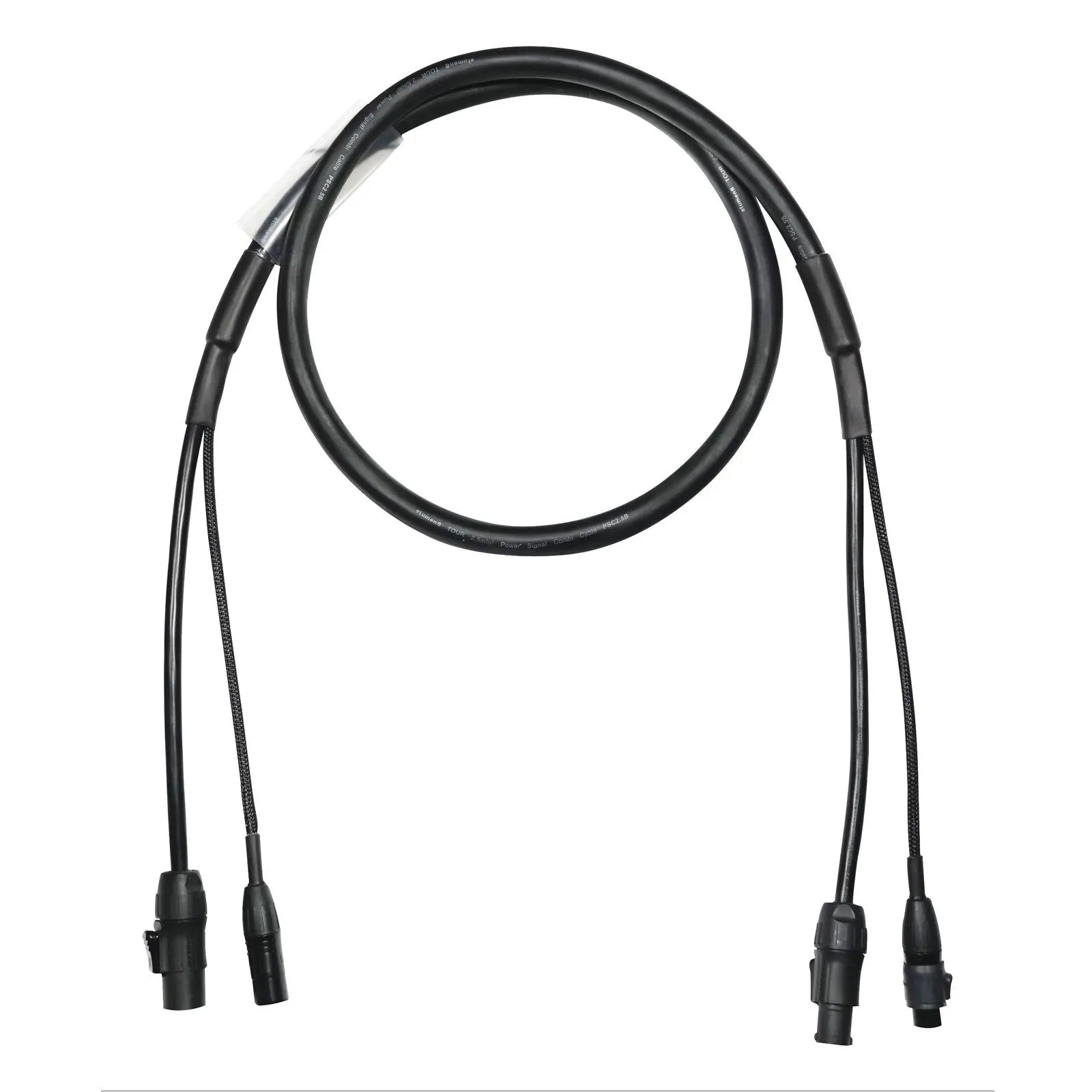 Hybrid multicore DMX signal plus power cables for linking lighting fixtures together in a convenient single outer jacket for speed of rigging while allowing the user to keep cable runs neat and tidy. These British manufactured cables are finished using nylon braided sleeving over the signal cable tail for maximum durability. These are ultra flexible and designed for touring use providing a solution to the problem of integrated signal and power distribution. Constructed using carefully selected fillers to maintain the overall shape and facilitate easier coiling. Made in Britain Genuine Seetronic connectors 5-Pin XLR female plus PowerTwist TR1 IP65 female to 5-Pin XLR male plus PowerTwist TR1 IP65 male Nylon braided signal cable secured by adhesive lined heatshrink Analogue or AES digital audio RS422/485 or DMX512 control with a 3 core power cable H05VV-F harmonised standard 2.5mm² power Clear heatshrink suitable for identification or asset label Suitable for most 110Ω balanced data applications such as RS422 RS485 DMX512 and timecode Oxygen-free copper cores for maximum signal integrity Length: 1m