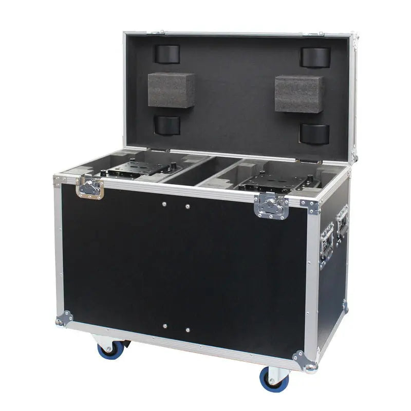 Touring grade cases from Elumen8 are a professional range of cases made to the highest quality and standards and built to withstand the rigours of the road. Please note: Shipping charges may apply Holds two 9RE Beam moving heads or similar and also features an accessory compartment Interlocking tongue and groove edging ensuring that all lids and covers stay secure even in an impact and form a fully dust proof seal 9mm hexaboard plywood panels Fitted with metal tour label dish and label Heavy duty industrial grade handles and butterfly catches All handles feature heavy duty rubber grips for comfort and non slip safety Riveted 35mm aluminium profile edge strips provide rigidity strength and durability Heavy duty ball corners for added impact protection Castors included (2 braked 2 non-braked)