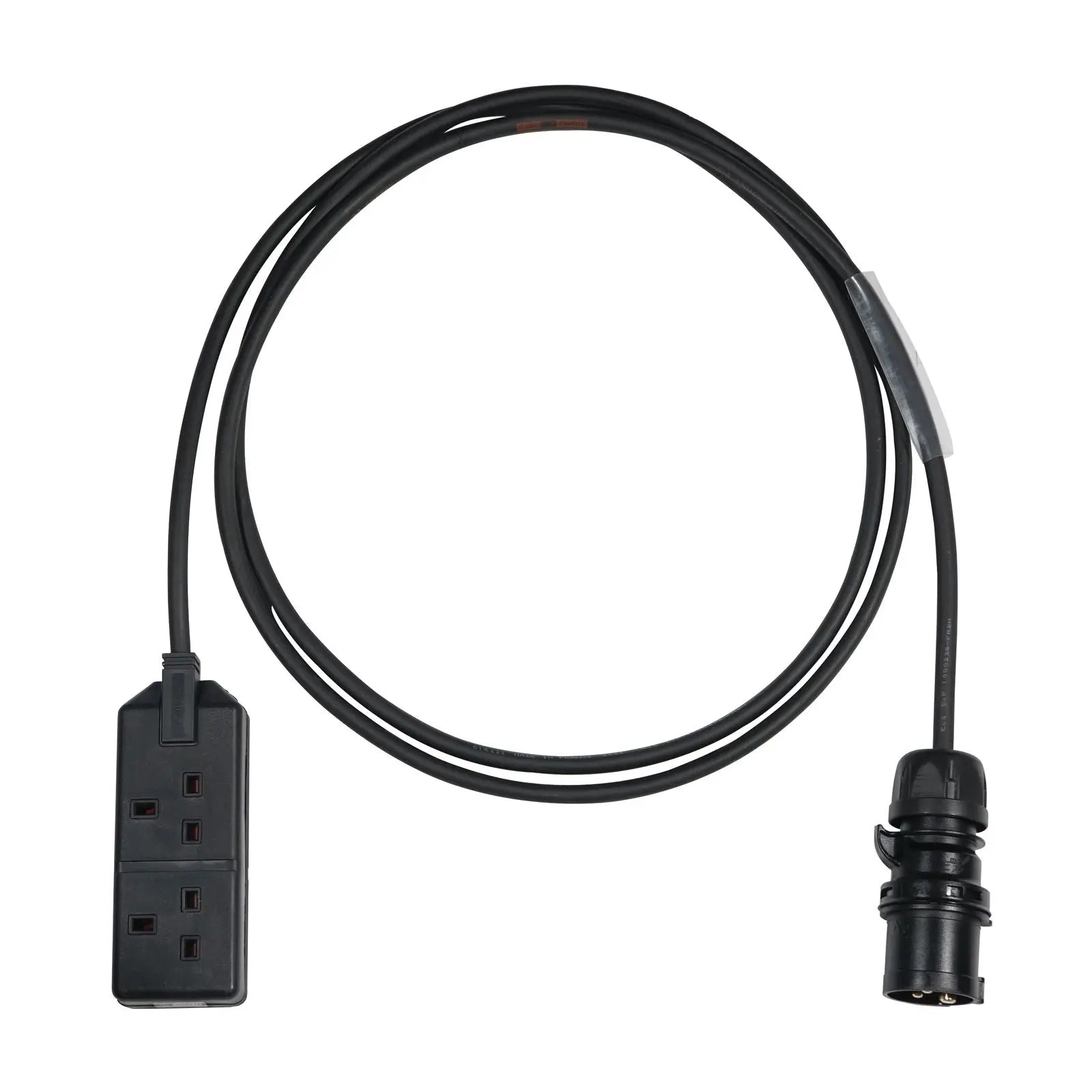 Elumen8 2m 1.5mm PCE Black 16A Plug to 2 Gang 13A Socket Cable