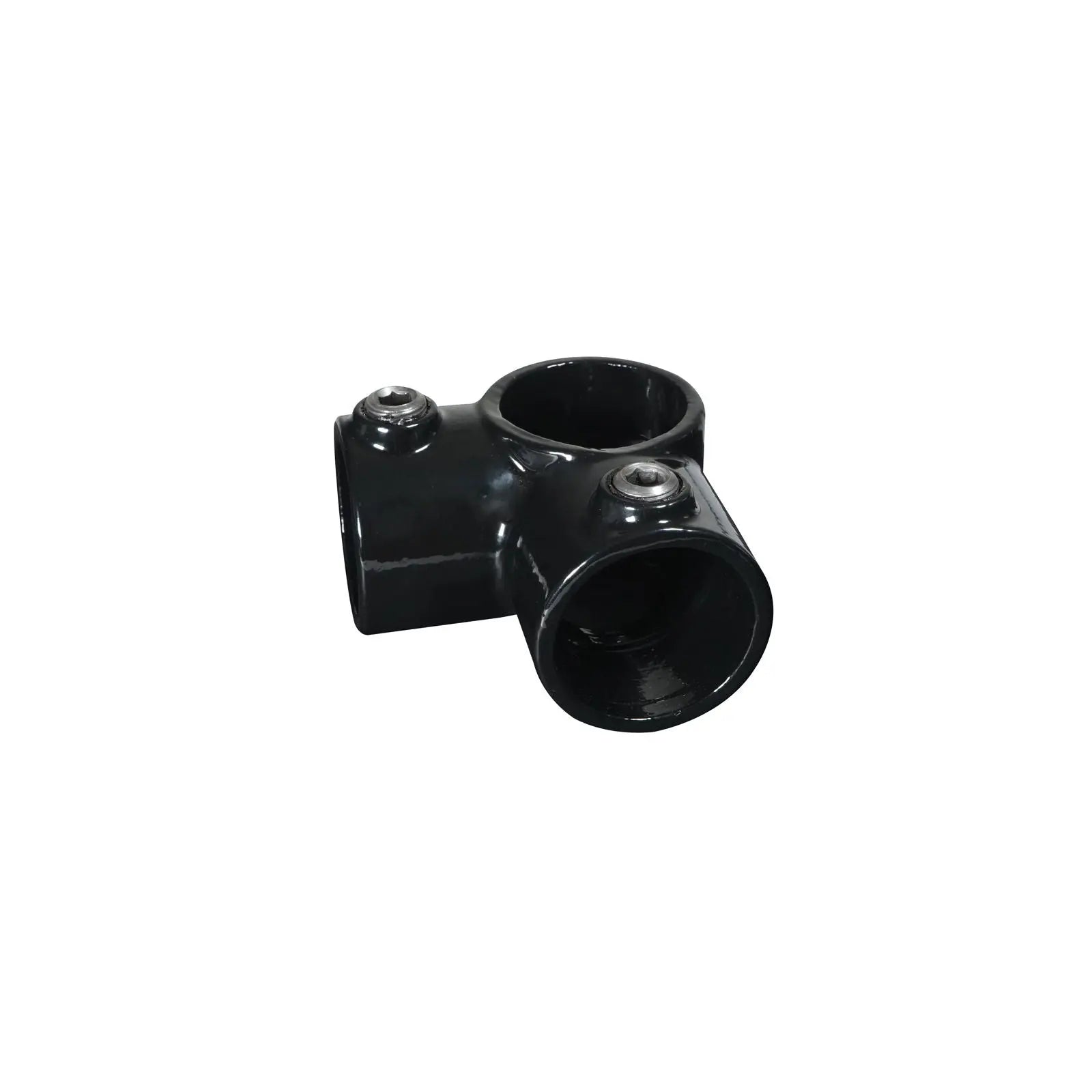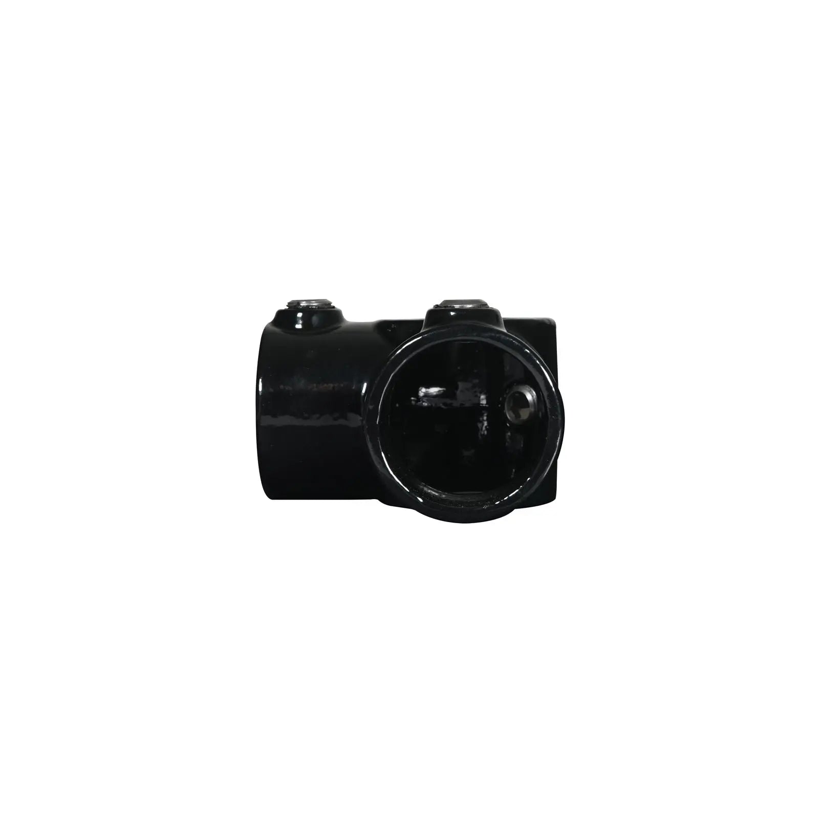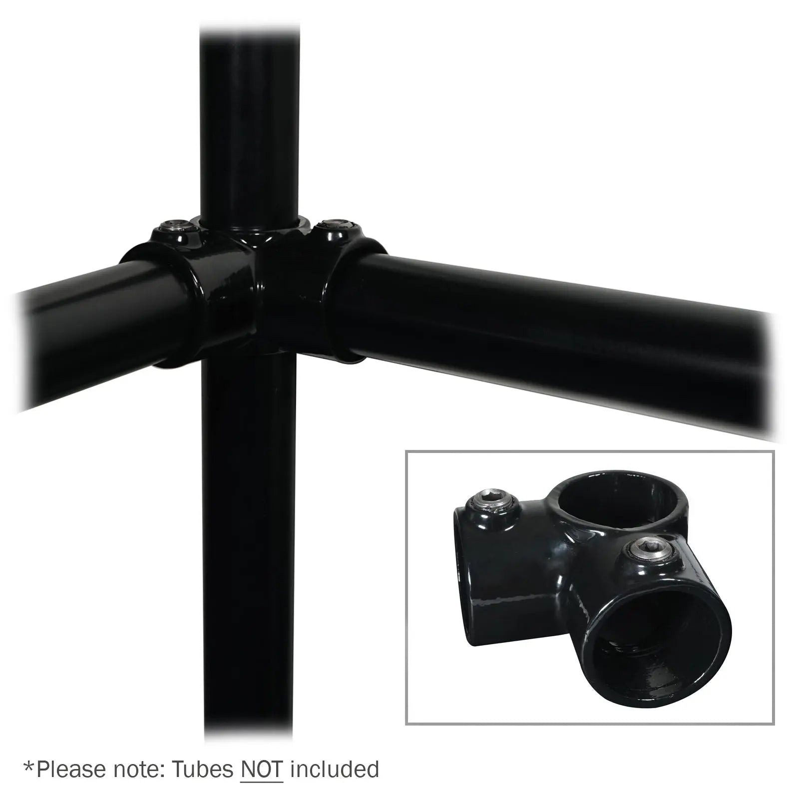 Elumen8 CLAM261 3 Side Outlet Tee Black Key Clamp (116-BPC). Key clamps are designed to secure and connect 48.3mmØ tubes quickly and easily. The wide range of options available enables users to create a huge variety of configurations including lighting grids studio frames staging and exhibitions stands. The 3 side outlet tee key clamp allows for the connection of three tubes with one tube passing directly through the corner junction. Ideal for use on lower rails. Malleable cast iron construction hot dip galvanised with black powder coated finish Designed to fit 48.3mmØ tubes Simply secured via an Allen key (not included) Please note: Not suitable for use in the construction of scaffolding frameworks Grub screws included