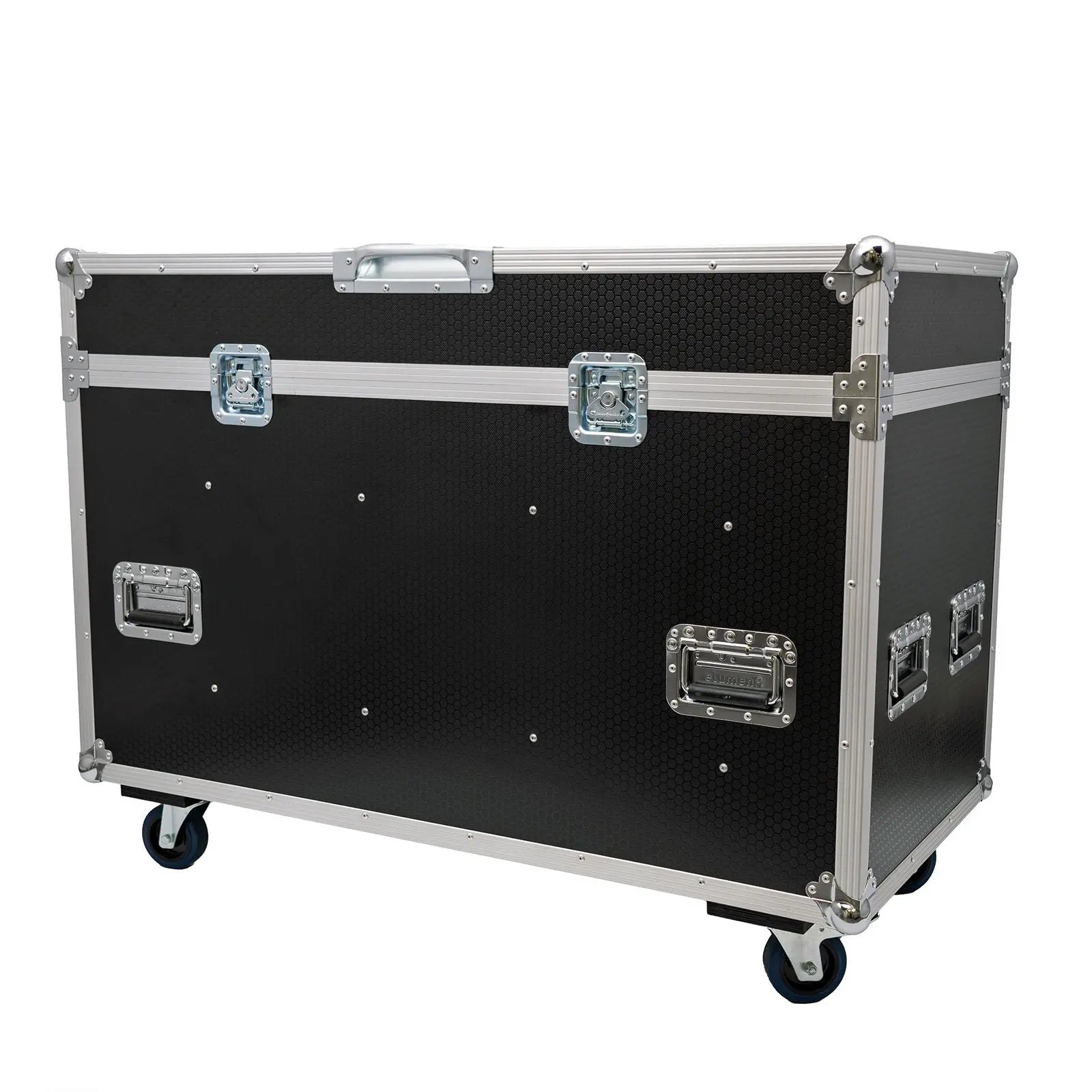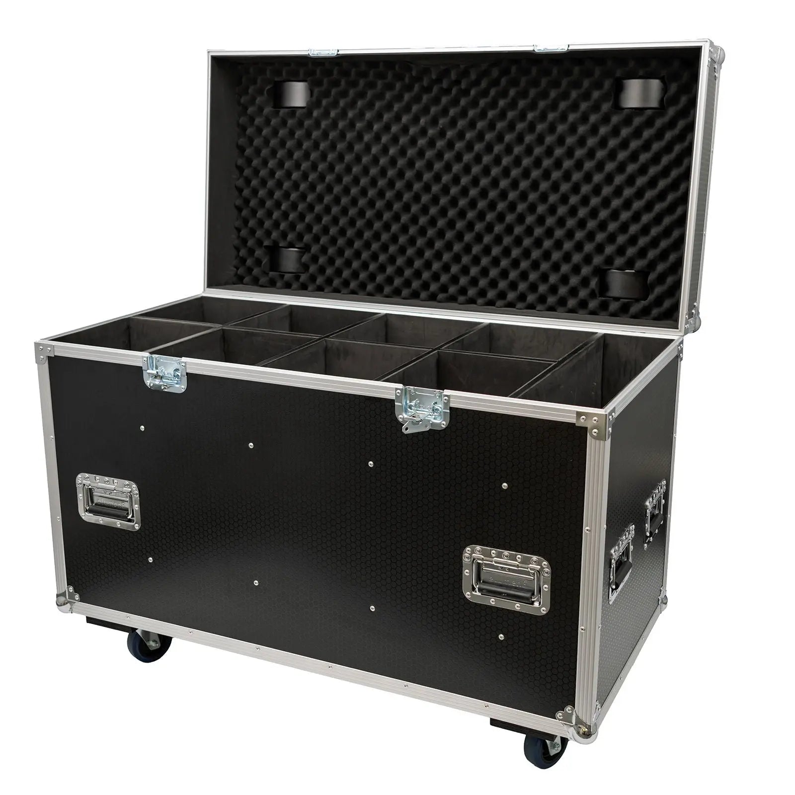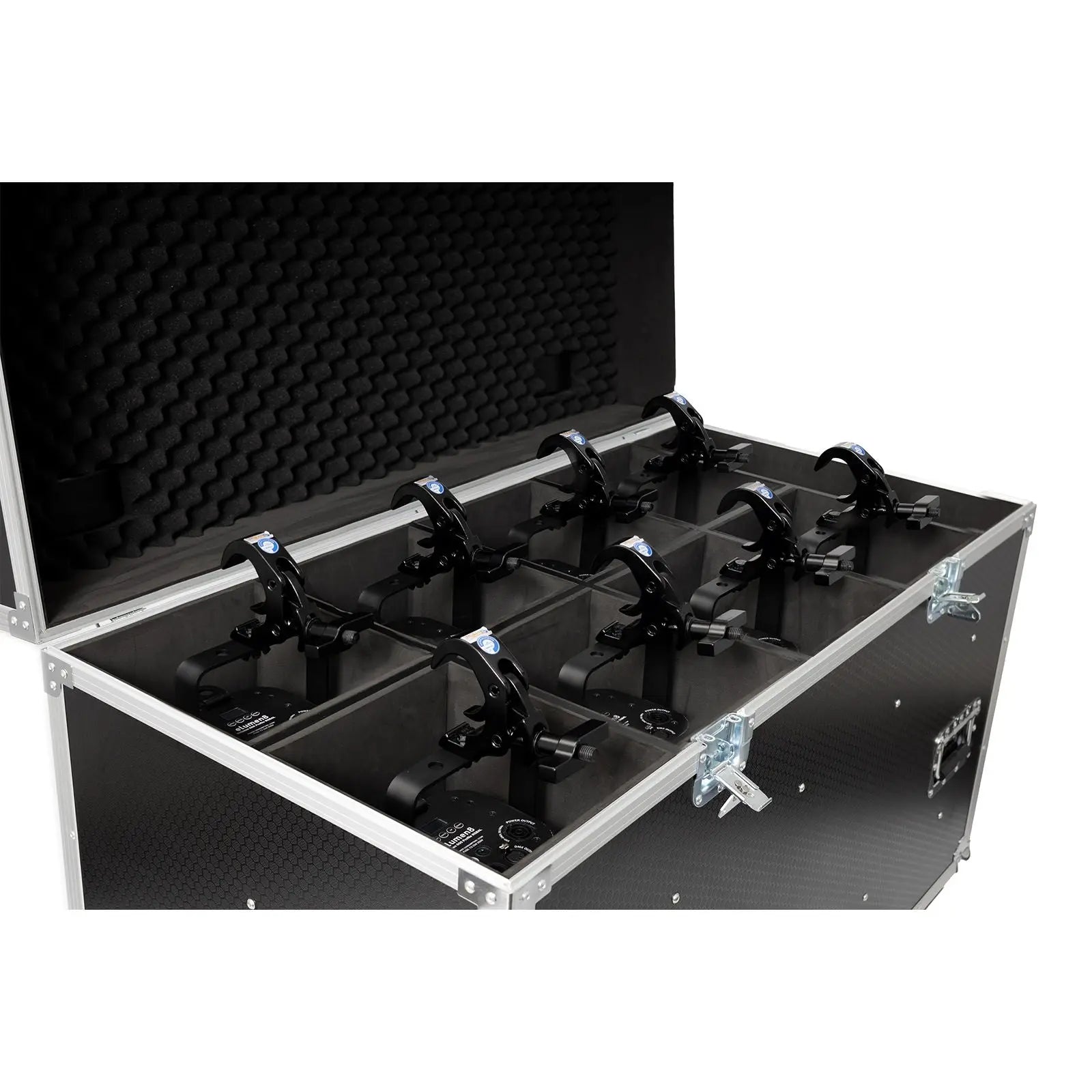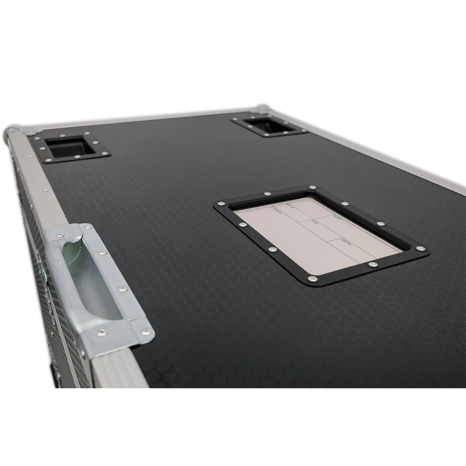Please note: Shipping charges may apply Holds eight Virtuoso 600 Profiles or similar with clamps and also features an accessory compartment Interlocking tongue and groove edging ensuring that all lids and covers stay secure even in an impact and form a fully dust proof seal 9mm hexaboard plywood panels Fitted with metal tour label dish and label Heavy duty industrial grade handles and butterfly catches Lower case handles feature heavy duty rubber grips for comfort and non slip safety Riveted 35mm aluminium profile edge strips provide rigidity strength and durability Heavy duty ball corners for added impact protection Castors included (2 braked 2 non-braked)