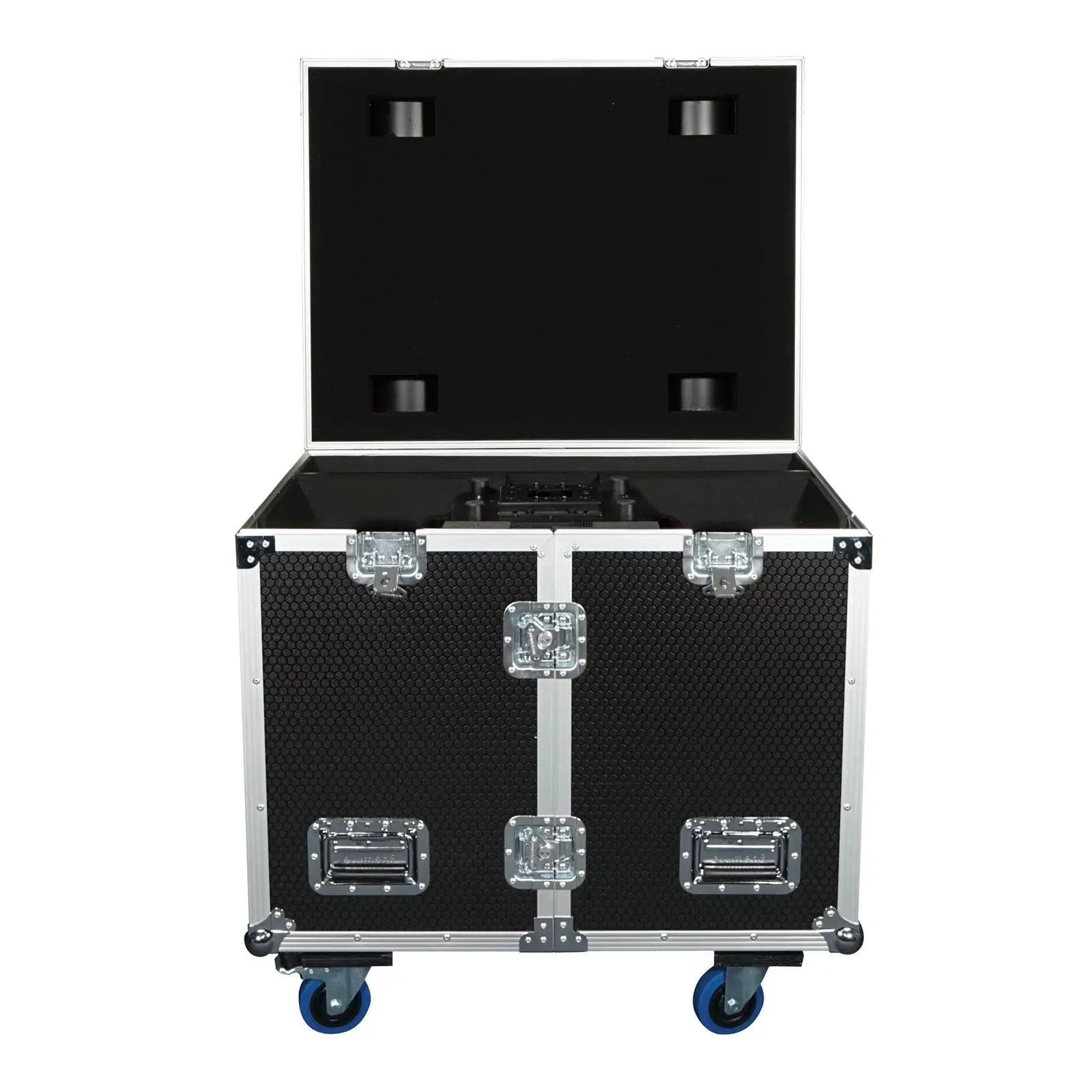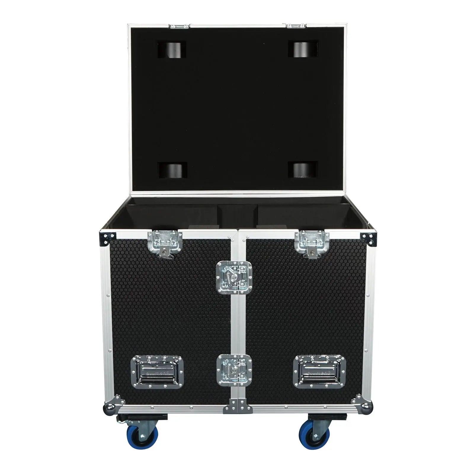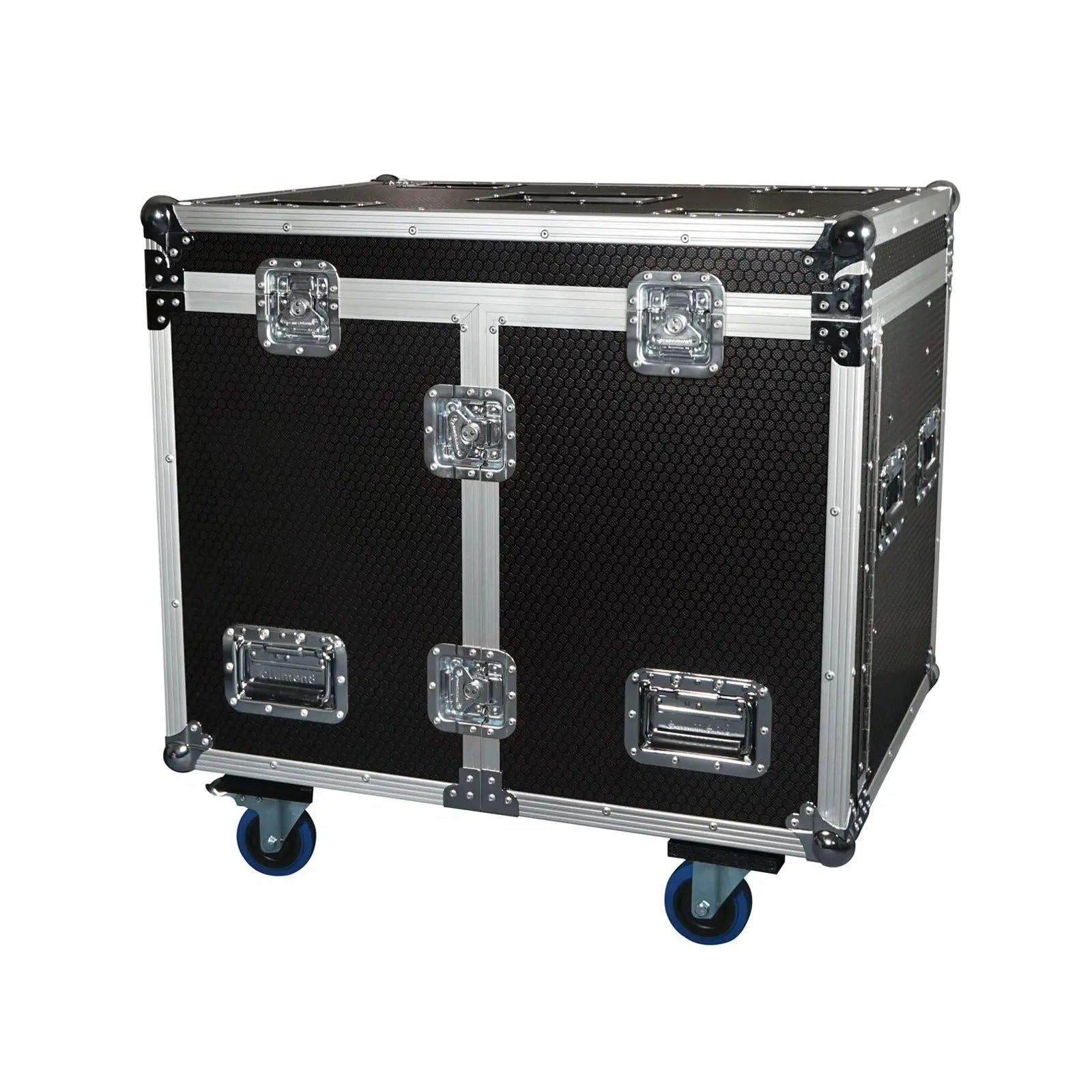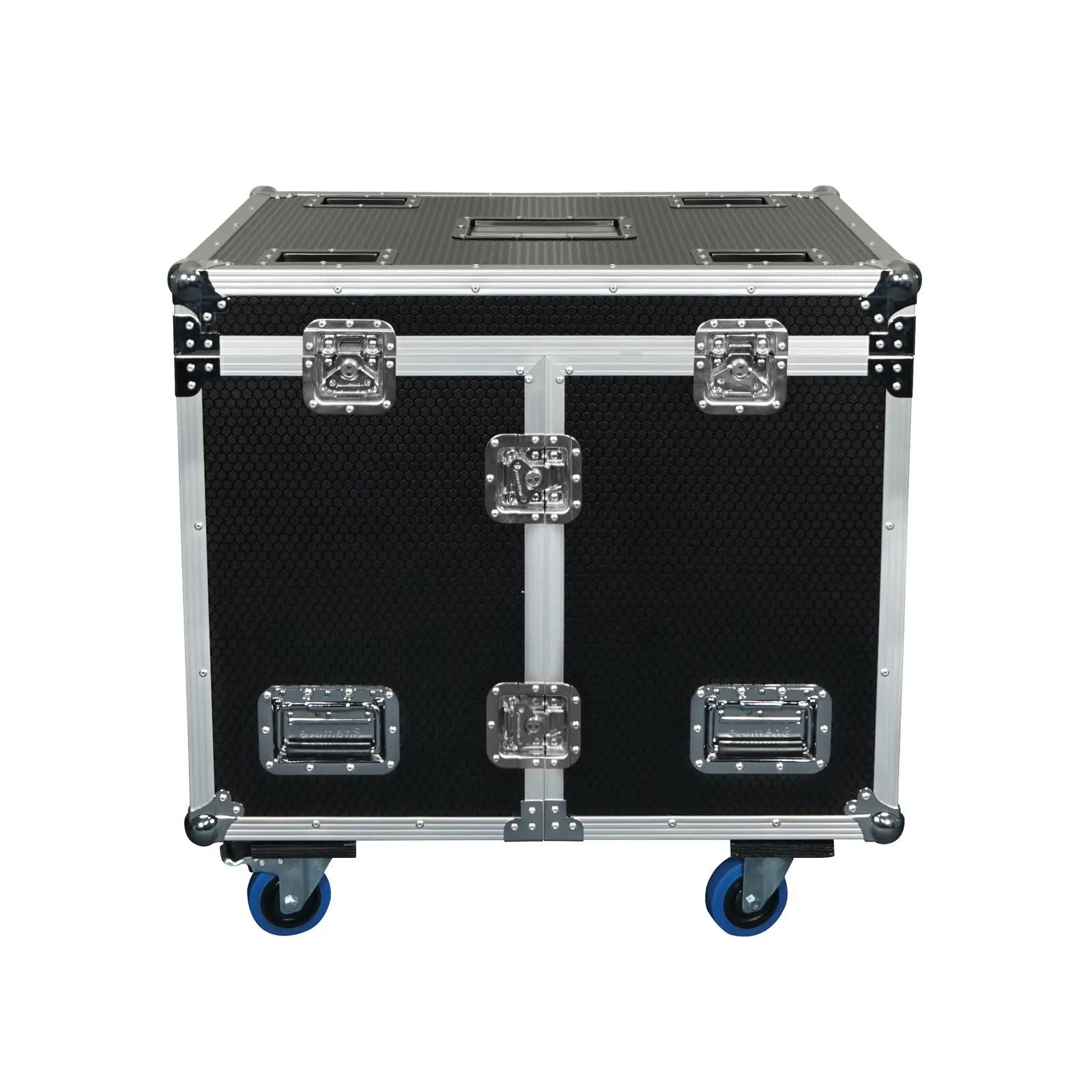 Touring grade cases from Elumen8 are a professional range of cases made to the highest quality and standards and built to withstand the rigours of the road. Please note: Shipping charges may apply Features 1 compartment for Evora CMY470 Hybrid/Evora CMY600 Profile Moving Heads plus an accessory compartment Interlocking tongue and groove edging ensuring that all lids and covers stay secure even in an impact and form a fully dust proof seal 9mm hexaboard plywood panels Fitted with metal tour label dish and label Heavy duty industrial grade handles and butterfly catches All handles feature heavy duty rubber grips for comfort and non slip safety Riveted 35mm aluminium profile edge strips provide rigidity strength and durability Heavy duty ball corners for added impact protection Castors included (2 braked 2 non-braked)