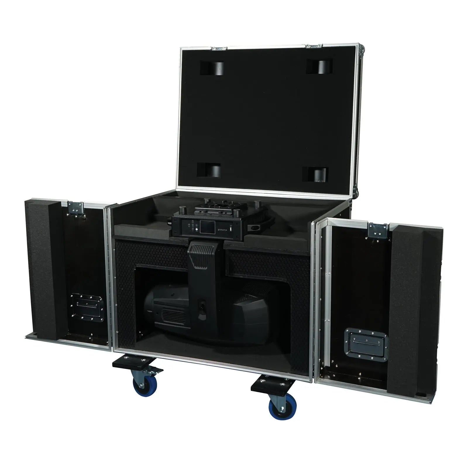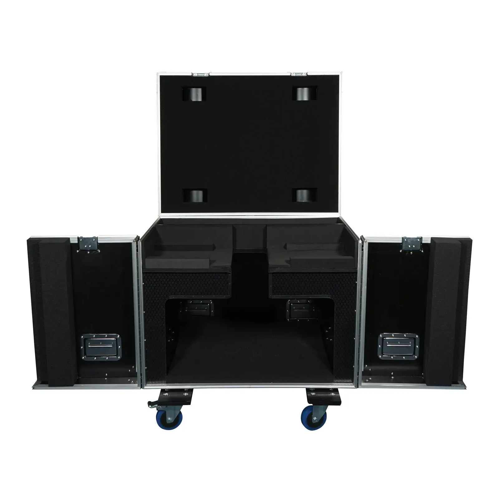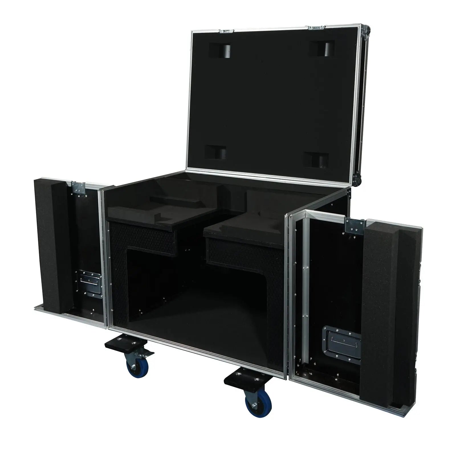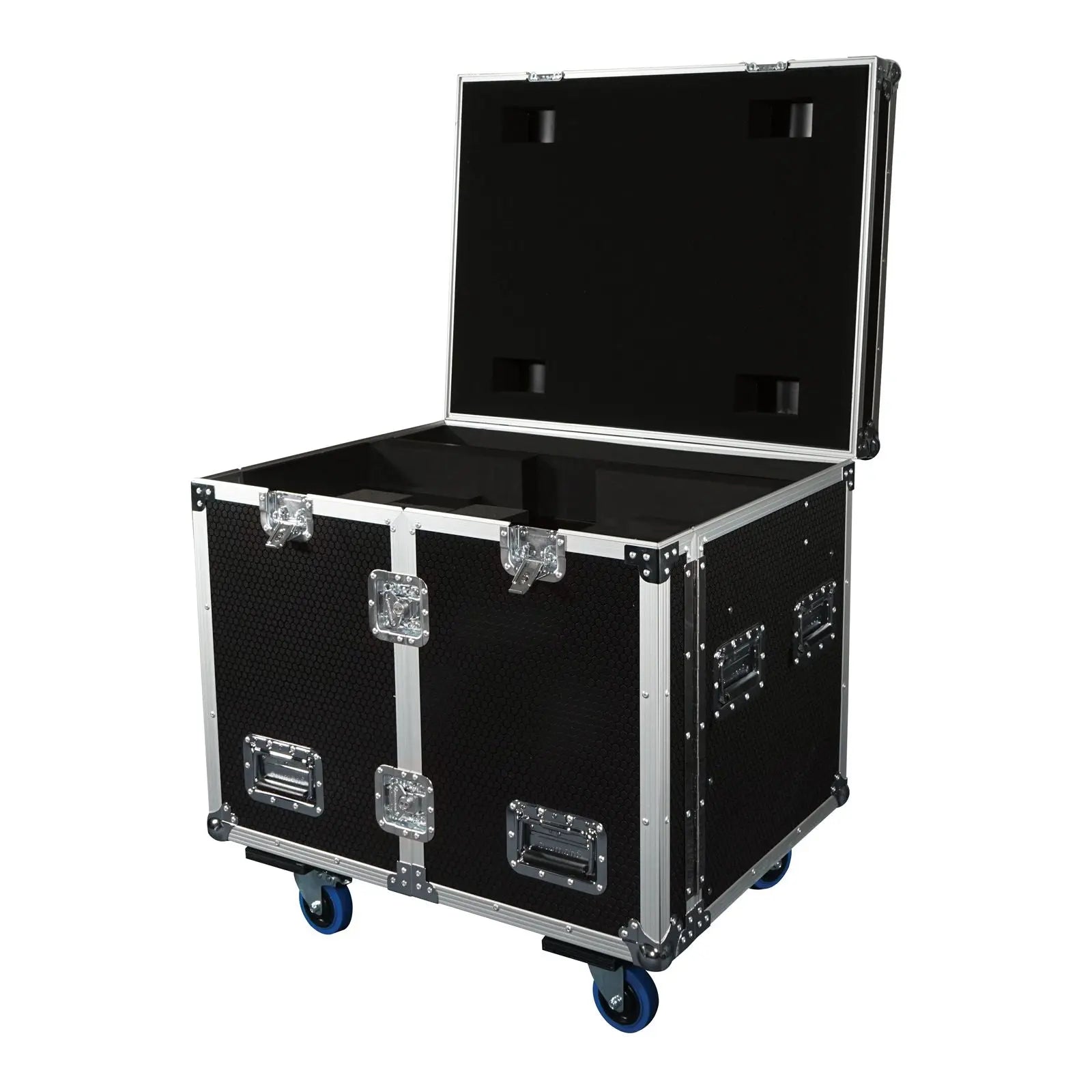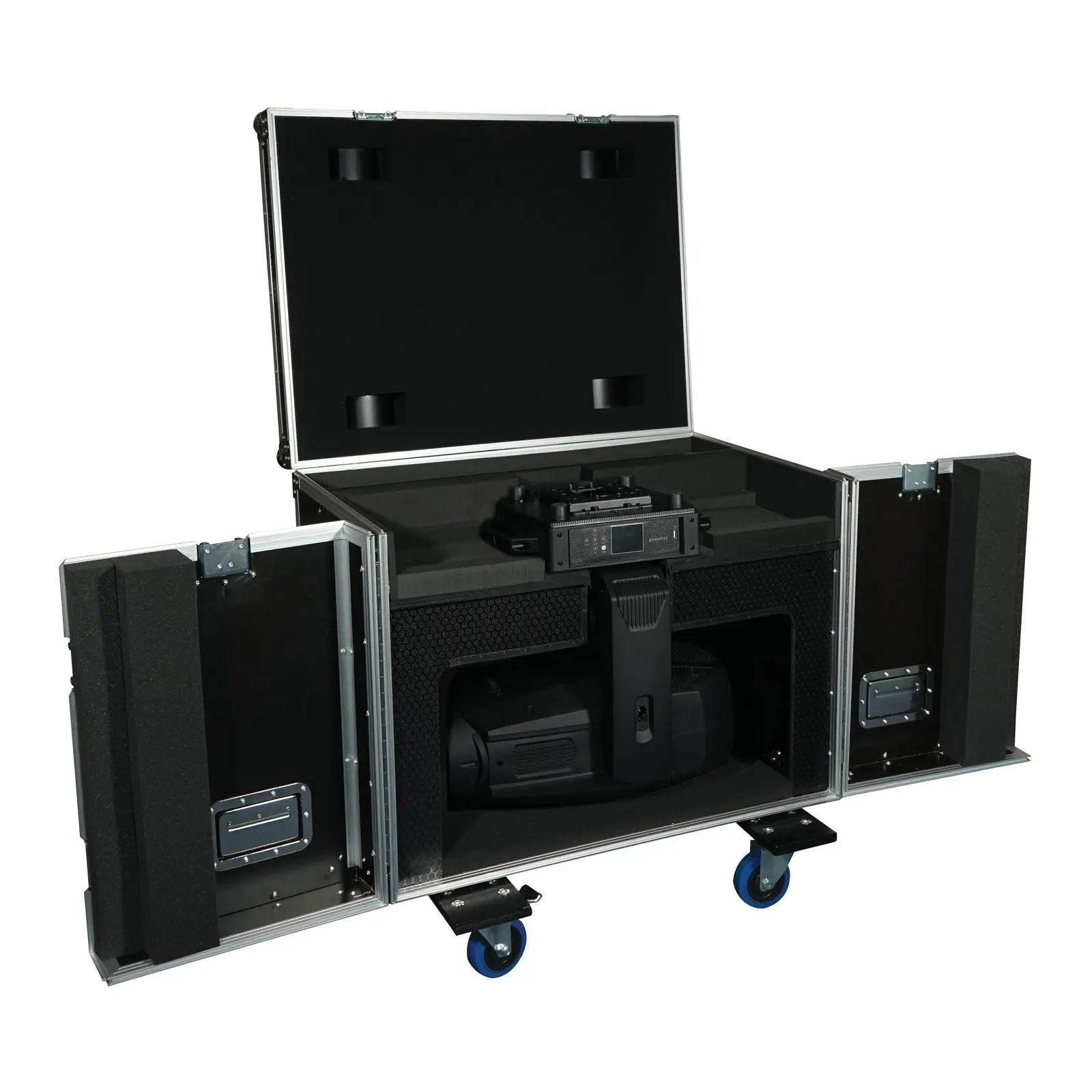 Touring grade cases from Elumen8 are a professional range of cases made to the highest quality and standards and built to withstand the rigours of the road. Please note: Shipping charges may apply Features 1 compartment for Evora CMY470 Hybrid/Evora CMY600 Profile Moving Heads plus an accessory compartment Interlocking tongue and groove edging ensuring that all lids and covers stay secure even in an impact and form a fully dust proof seal 9mm hexaboard plywood panels Fitted with metal tour label dish and label Heavy duty industrial grade handles and butterfly catches All handles feature heavy duty rubber grips for comfort and non slip safety Riveted 35mm aluminium profile edge strips provide rigidity strength and durability Heavy duty ball corners for added impact protection Castors included (2 braked 2 non-braked)