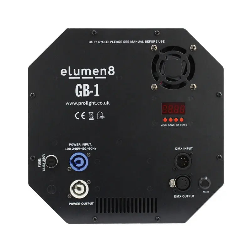 Transform your beams with this innovative effect from Elumen8. Inside the robust metal and fan cooled housing are 6 individually controllable multi-faceted dishes which can be rotated continuously in any direction at variable speeds. When strategically placed the Reflectabeam can have beam effects aimed at it producing a multitude of bright pin sharp shards of light that are reflected across walls and floors adding a new dimension to venues dancefloors and stage sets. 2 year warranty 6 mirror dishes Individually controllable mirrors DMX channels: 2 or 8 selectable Auto sound active and master/slave modes Quick release omega clamp included 4 button menu with LED display powerCON input/output 5-Pin XLR input/output Fan cooled housing