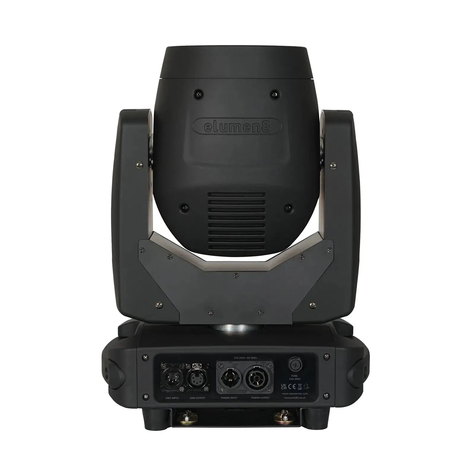 Loaded with an intense Osram® SIRIUS HRI 132W (2R) discharge lamp (9200K) the Elumen8 Kudos 2RE Beam features 14 colours (plus open) and 15 static gobos (plus open). A tight 4° beam angle and motorised focus allows users to create sharp well defined beams. This compact moving head also features an 8 facet rotating prism for multi beam effects along with a frost filter enabling the lighting designer to select a host of options to create stunning light shows. An onboard 4 button menu with 2.6” LCD display and selectable 16-Bit pan and tilt with auto correction make the Kudos 2RE Beam a truly ‘event ready’ fixture. 2 year warranty 1 x Osram® SIRIUS HRI 132W (2R) discharge lamp (9200K) Beam angle: 4° 103000 Lux @ 10m Motorised focus CRI: 60 8 facet circular rotating prism Frost filter (13°) Gobo wheel: 15 static gobos + open Colour wheel: 14 colours + open DMX channels: 2/12 or 16 selectable Auto sound active manual control and master/slave modes Forward facing show mode Pan/tilt auto correction 16-Bit pan/tilt positioning Pan: 540° Tilt: 270° 0 - 100% dimming Variable strobe Quick release omega clamps included Square hole spacing on omega clamp receivers allows for clamps to be mounted in all orientations 4 button menu with 2.6” LCD display powerCON TRUE1 input/output 5-Pin XLR input/output Fan cooled