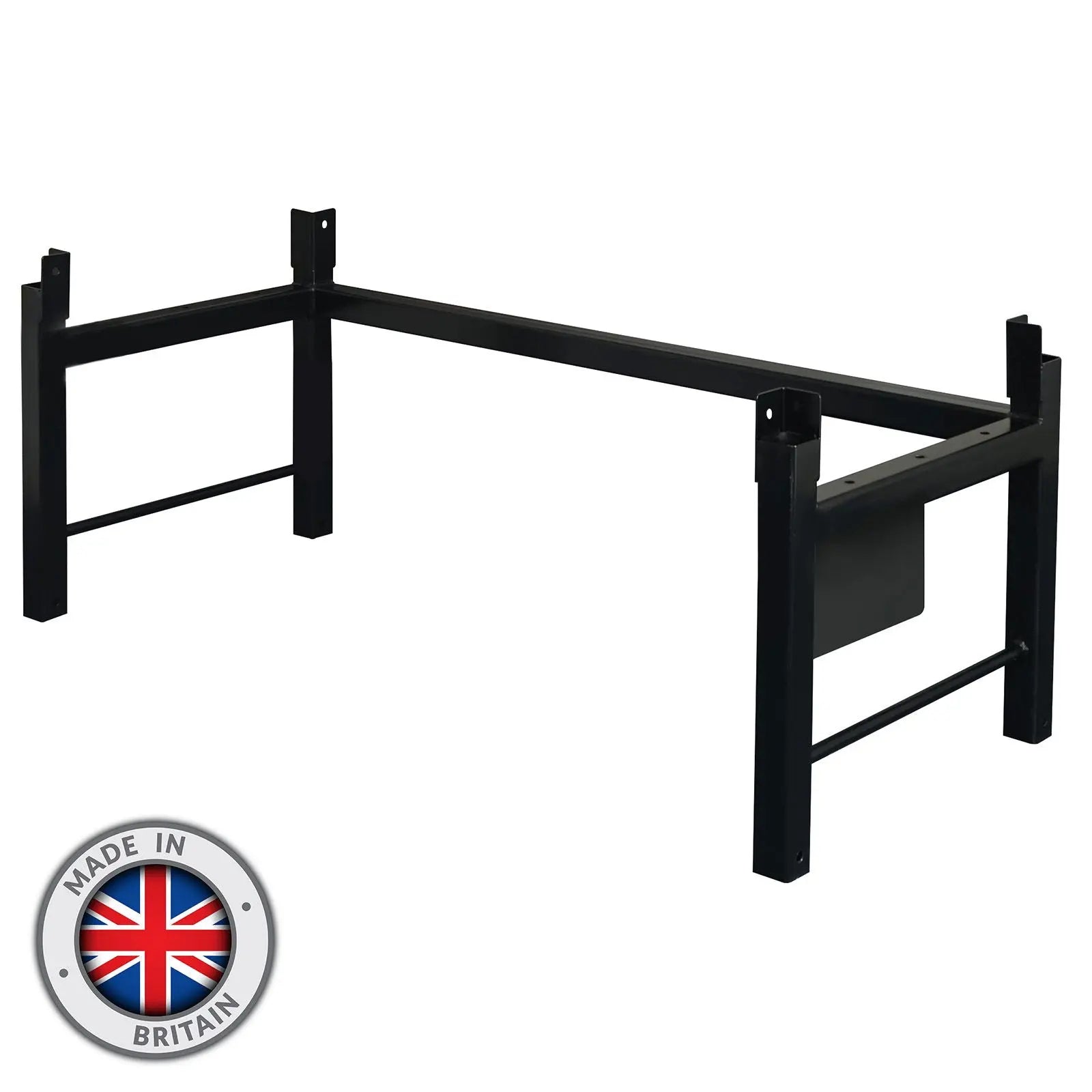 The Elumen8 Meat Rack system is a modular storage and transport solution for lighting fixtures offering flexibility without the bulk of traditional flight cases. Built around a sturdy base unit (sold separately) the system allows users to stack multiple frame sections which accept standard 48-50mm scaffold tubes and half couplers (not included). This open side frame version features a three-sided design for accommodating taller fixtures such as theatrical profiles. Manufactured in Britain from robust steel and built to a 600mm-wide ‘quarter pack’ format this rack section is ideal for efficient organised storage of lighting and rigging equipment. Please note: Shipping charges may apply Made in Britain Modular system – build rack section by section Three-sided frame for tall fixtures like theatrical profiles Steel construction 600mm 'quarter pack' width format 500mm stacking height Drilled to accept up to three scaffold tubes at 150mm centres Suitable for stage fixtures and rigging equipment