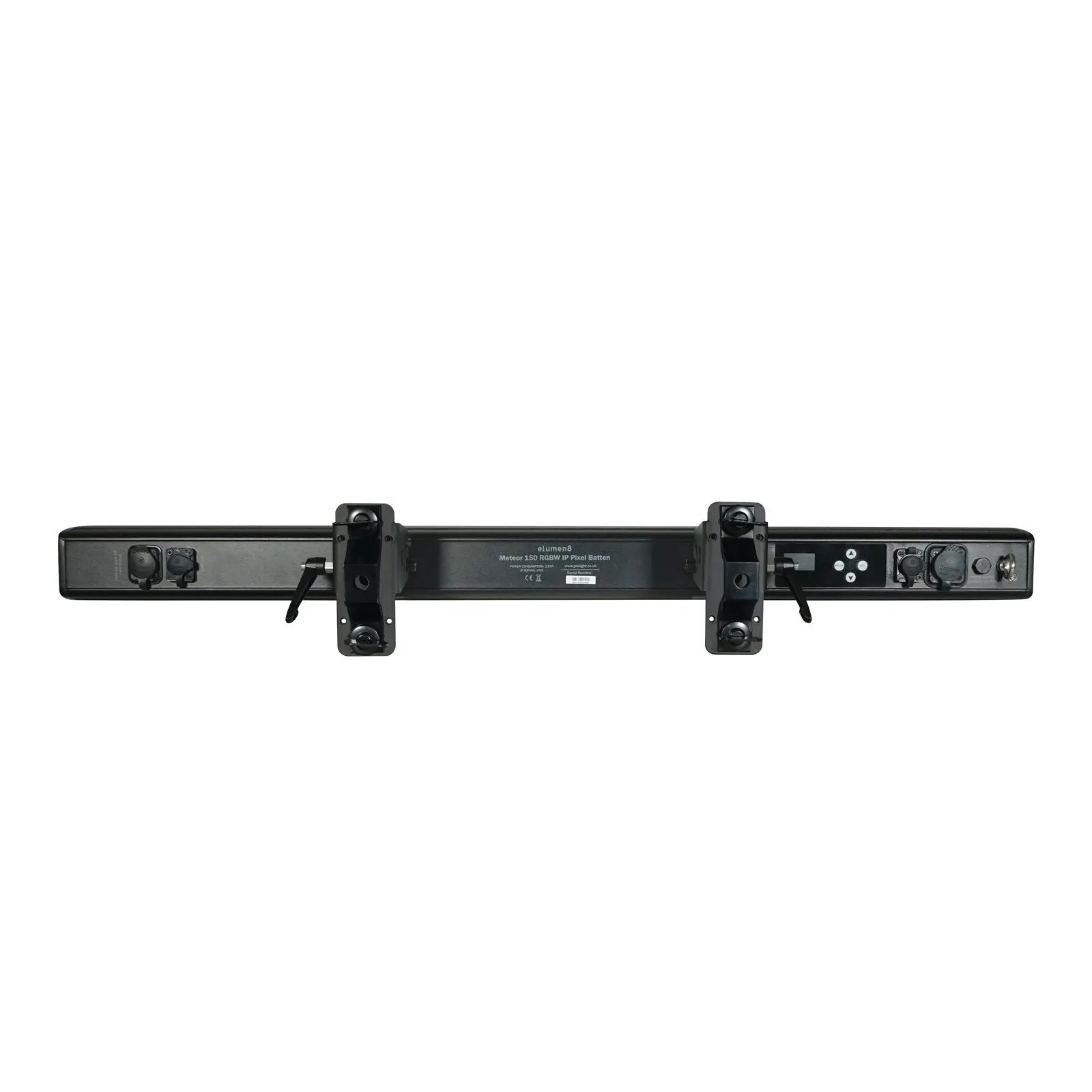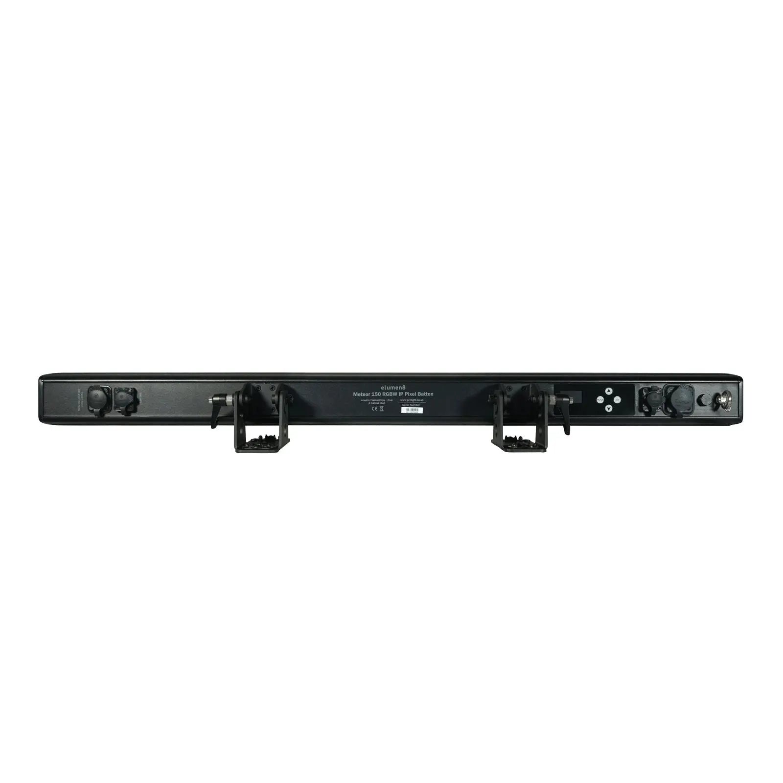 The Elumen8 Meteor 150 RGBW IP Pixel Batten features high output LEDs housed in a rugged rental-ready IP65 housing suitable for indoor and temporary outdoor applications. The 20° x 30° beam angle smoothly washes facades in deep rich colours or pastel tones whilst the individually addressable LEDs allow for a range of pixel effects to be created on-stage. The Meteor 150 Batten can be controlled via DMX or via the 4 button menu system allowing access to manual auto and master/slave modes. The fixture boasts convection cooling for completely silent operation whilst the integral mounting brackets featuring quick-release omega clamps makes rigging and installation a breeze. 2 year warranty 15 x 10W quad-colour LEDs (RGBW) Beam angle: 20° x 30° 3267 Lux @ 2m (full on) Refresh rate: 1kHz 4kHz 8kHz or 16kHz selectable Full pixel mapping capabilities DMX channels: 4/6/9/60 or 65 selectable Static colour colour change colour fade and master/slave modes 0 - 100% dimming 4 dimming curves: Linear square law inverse square law and S-curve Variable strobe RDM (Remote Device Management) 4 button menu with OLED display Bracket allows for multiple rigging or floor standing applications Removable base plate included enables omega clamps to be rigged multiple positions to avoid truss cross braces Quick release omega clamps included PowerTwist TR1 input/output IP rated 5-Pin XLR input/output Convection cooled