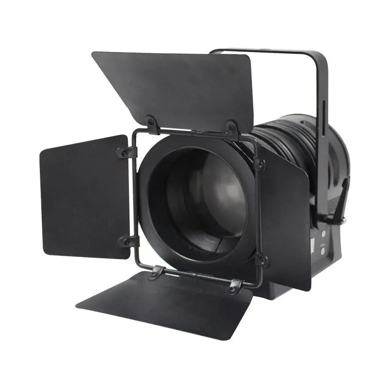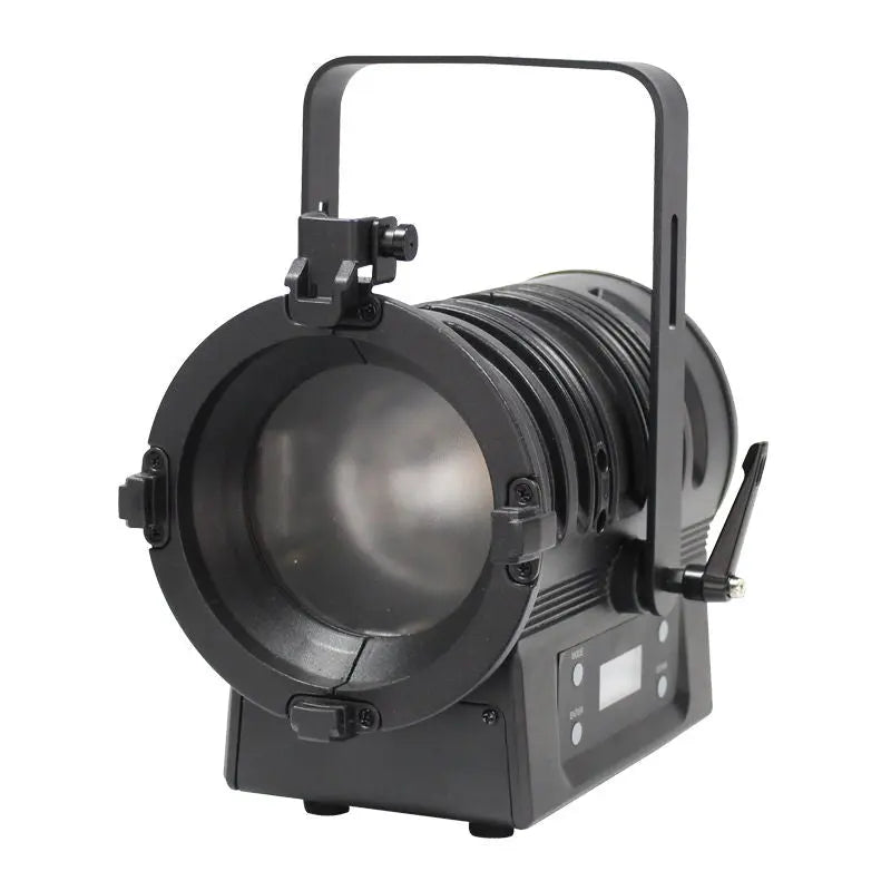 The MP LED Fresnel family are compact robust and easy to use general purpose stage lighting fixtures ideal for small stages studios and display lighting applications. These fixtures provide a superb light output and benefit from temperature controlled fan cooling for whisper quiet operation. The 4 button display allows users to select DMX and manual dimming modes along with dimming curves. 2 year warranty 1 x 75W quad-colour COB LED (RGBW) Manually adjustable beam angle: 10°- 50° 10° - 6031 Lux @ 2m (full on) 50° - 630 Lux @ 2m (full on) Refresh rate: 1.8kHz DMX channels: 4/5 or 7 selectable RDM (Remote Device Management) 0-100% dimming 4 dimming curves in both LED and halogen profiles: Linear square law inverse square law and S-curve 4 button menu with LCD display powerCON input 5-Pin XLR input/output Filter frame and barn doors included Temperature controlled fan