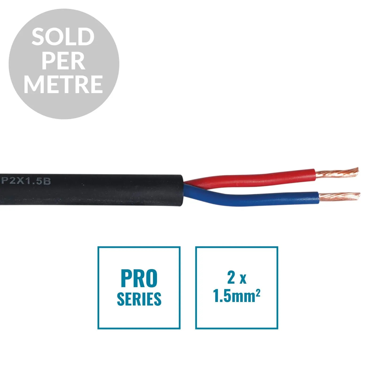 Elumen8 PRO 2 Core 2 x 1.5mm Speaker Cable SP2X1.5B Cut Length Black