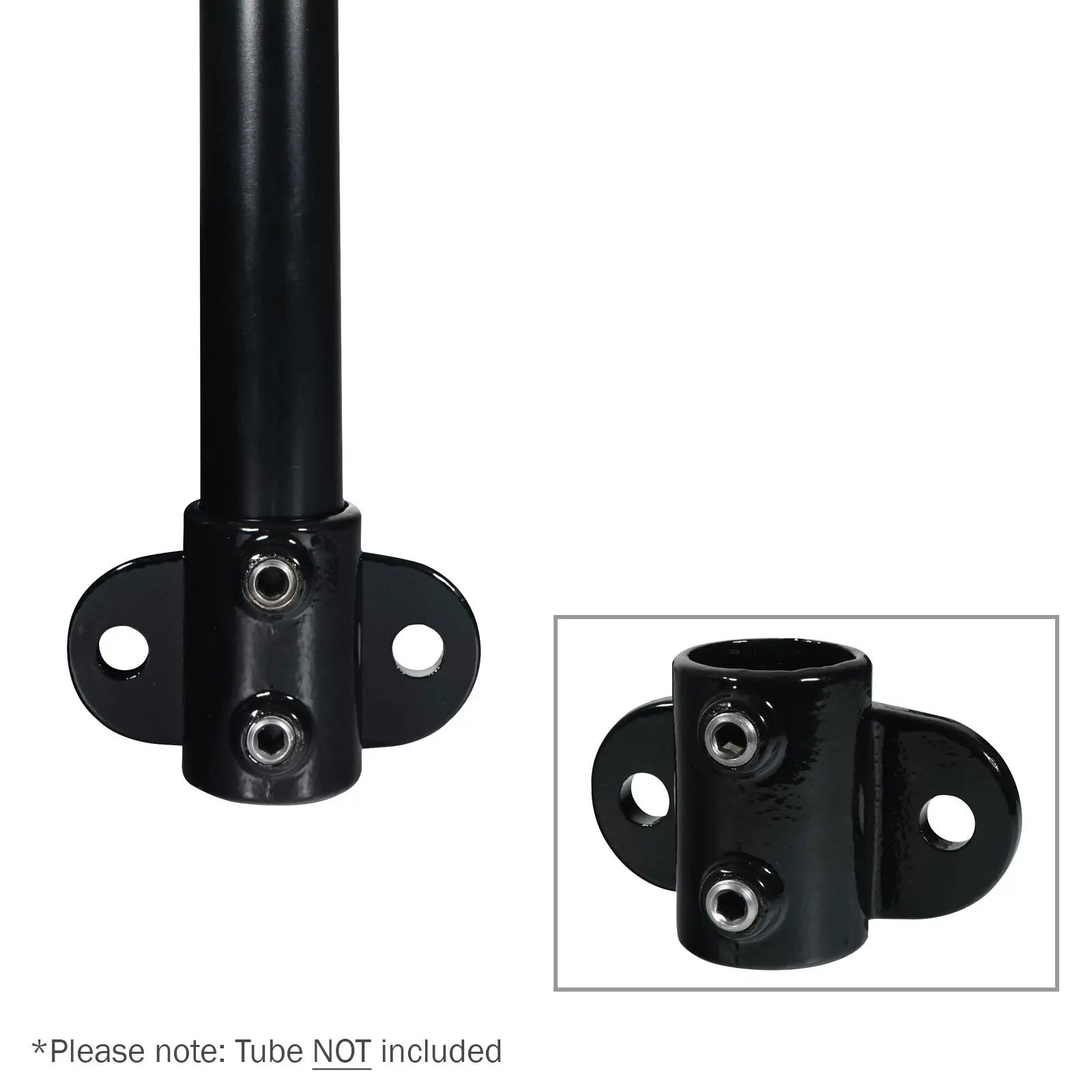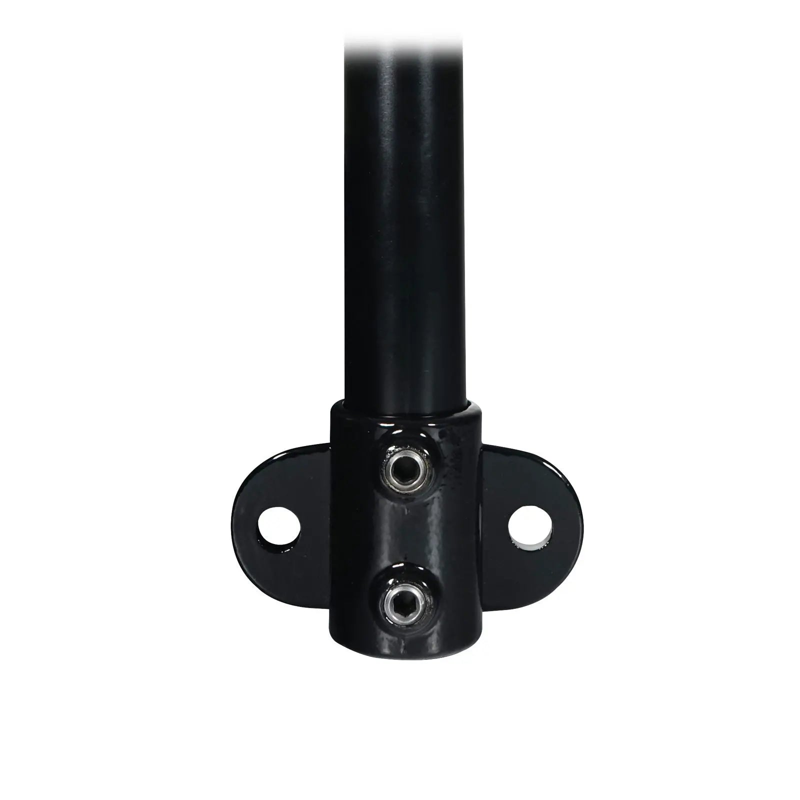 Elumen8 CLAM263 Rail Support Black Key Clamp (246-BPC). Key clamps are designed to secure and connect 48.3mmØ tubes quickly and easily. The wide range of options available enables users to create a huge variety of configurations including lighting grids studio frames staging and exhibitions stands. The rail support key clamp allows handrails or other structures to be fixed along walls offering extra stability to longer tubes. Malleable cast iron construction hot dip galvanised with black powder coated finish Designed to fit 48.3mmØ tubes Simply secured via an Allen key (not included) Please note: Not suitable for use in the construction of scaffolding frameworks Grub screws included