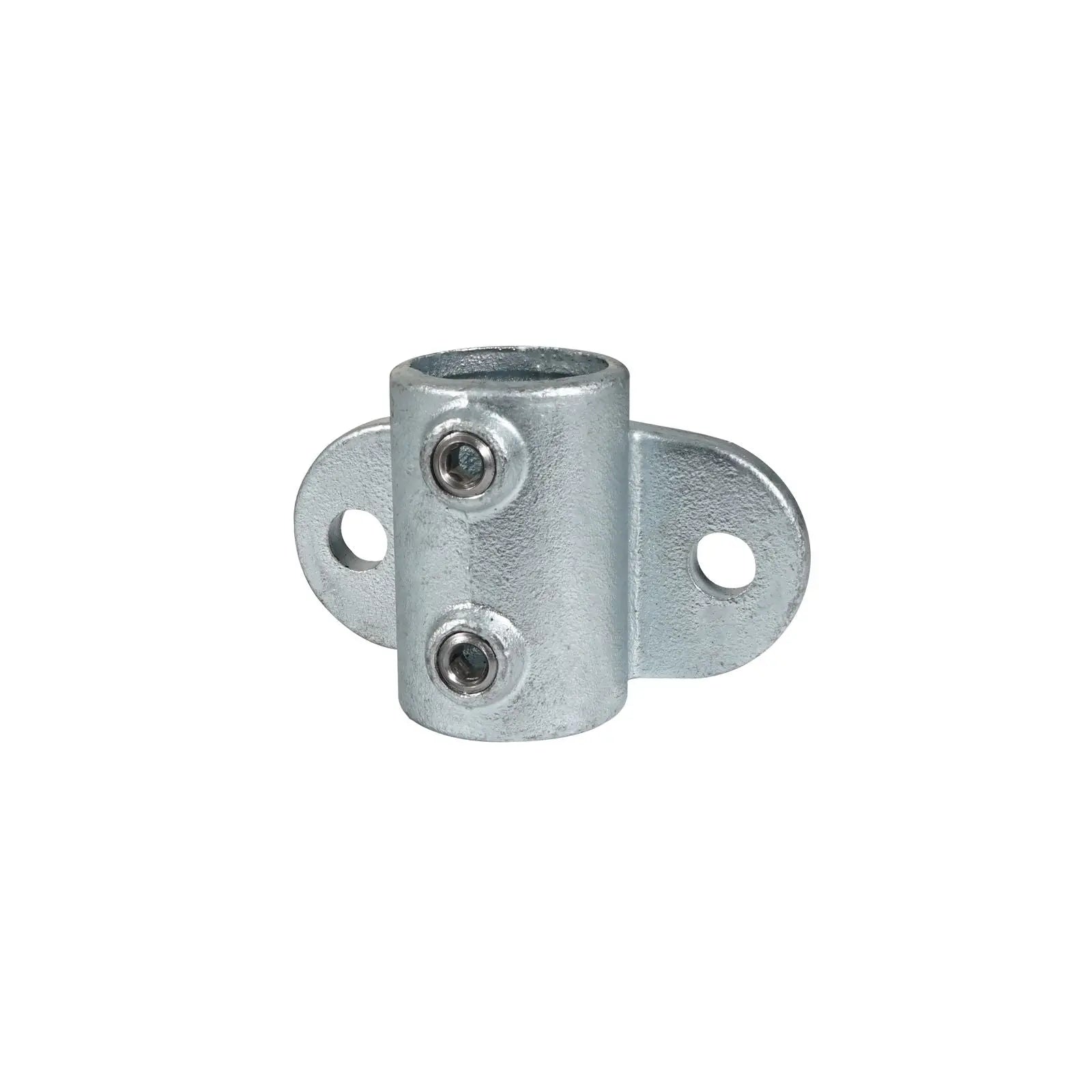 Elumen8 CLAM213 Rail Support Key Clamp (246-HDG). Key clamps are designed to secure and connect 48.3mmØ tubes quickly and easily. The wide range of options available enables users to create a huge variety of configurations including lighting grids studio frames staging and exhibitions stands. The rail support key clamp allows handrails or other structures to be fixed along walls offering extra stability to longer tubes. Malleable cast iron construction with hot dip galvanised finish Designed to fit 48.3mmØ tubes Simply secured via an Allen key (not included) Please note: Not suitable for use in the construction of scaffolding frameworks Grub screws included
