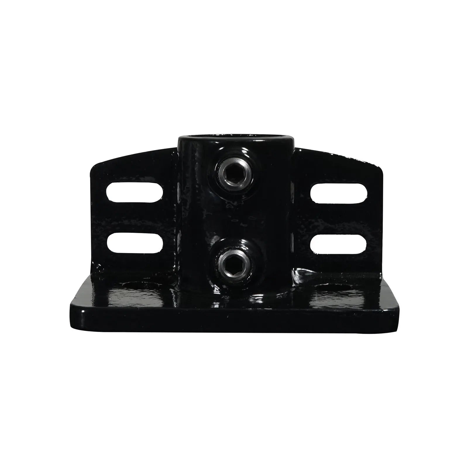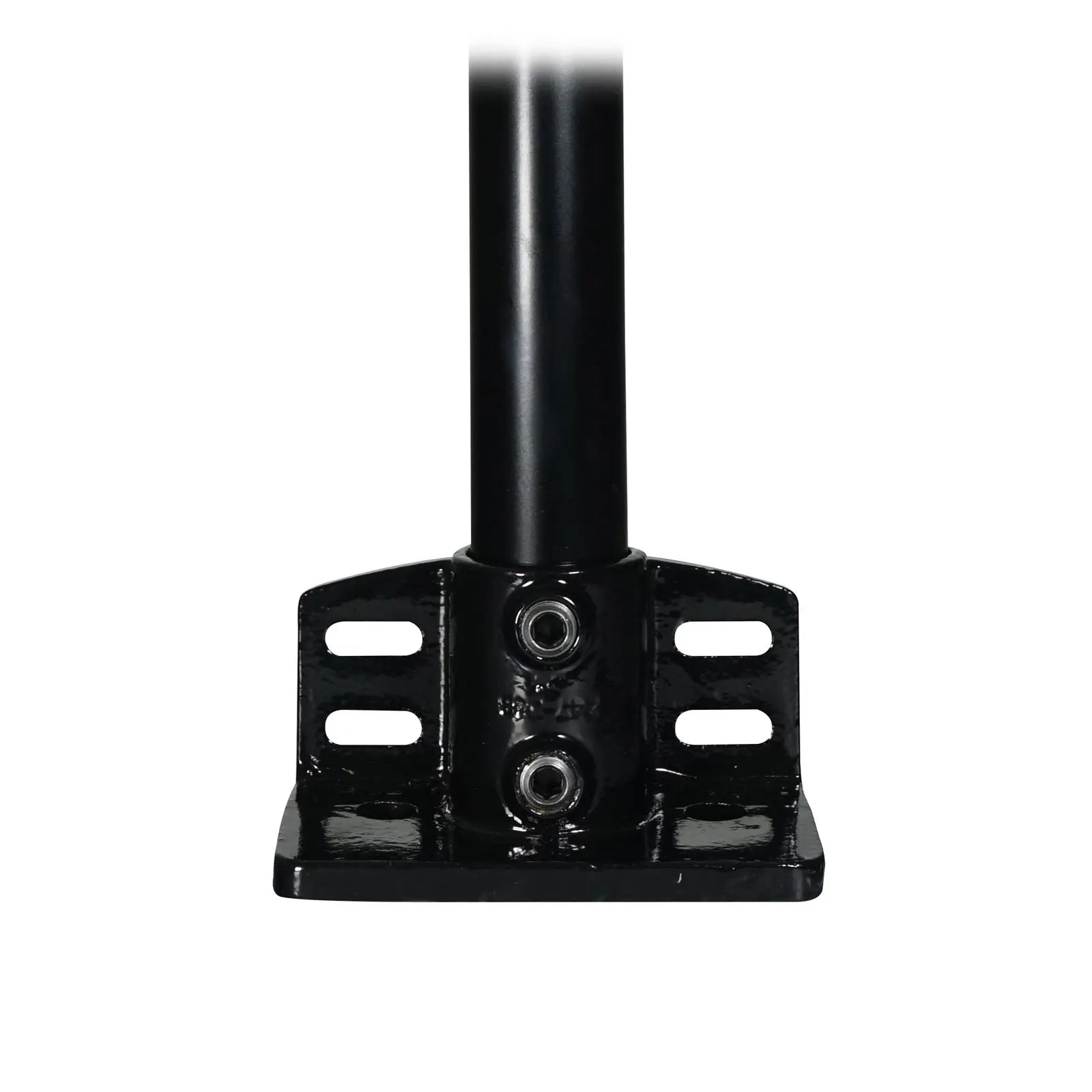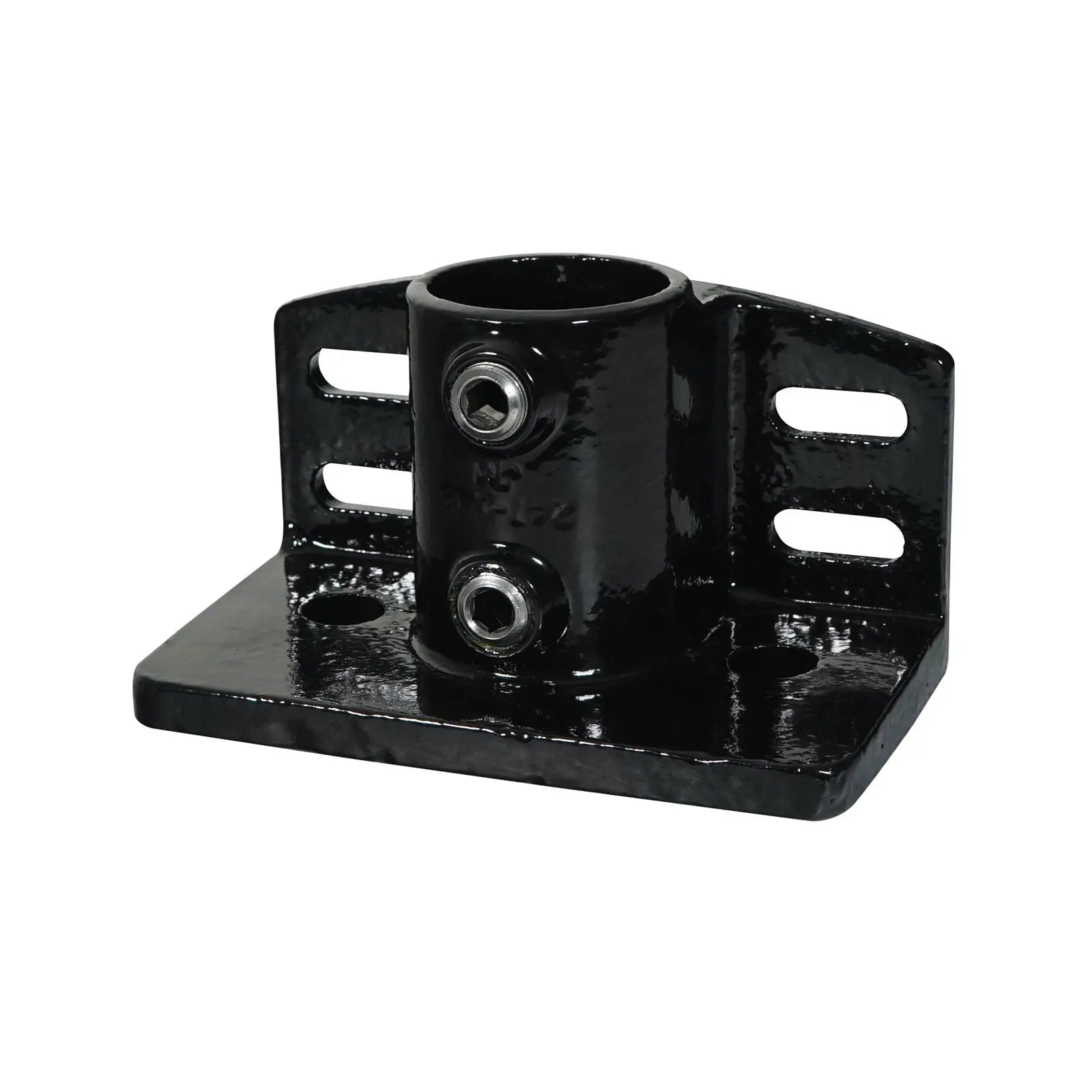 Elumen8 CLAM258 Railing Base Black Key Clamp (247-BPC). Key clamps are designed to secure and connect 48.3mmØ tubes quickly and easily. The wide range of options available enables users to create a huge variety of configurations including lighting grids studio frames staging and exhibitions stands. The railing base key clamp provides a structural base to support vertical posts for handrails and guardrails. It can also be secured to the ground with suitable fixings providing more stability and features a vertical plate to fix kick boards directly to it. Malleable cast iron construction hot dip galvanised with black powder coated finish Designed to fit 48.3mmØ tubes Simply secured via an Allen key (not included) Please note: Not suitable for use in the construction of scaffolding frameworks Grub screws included