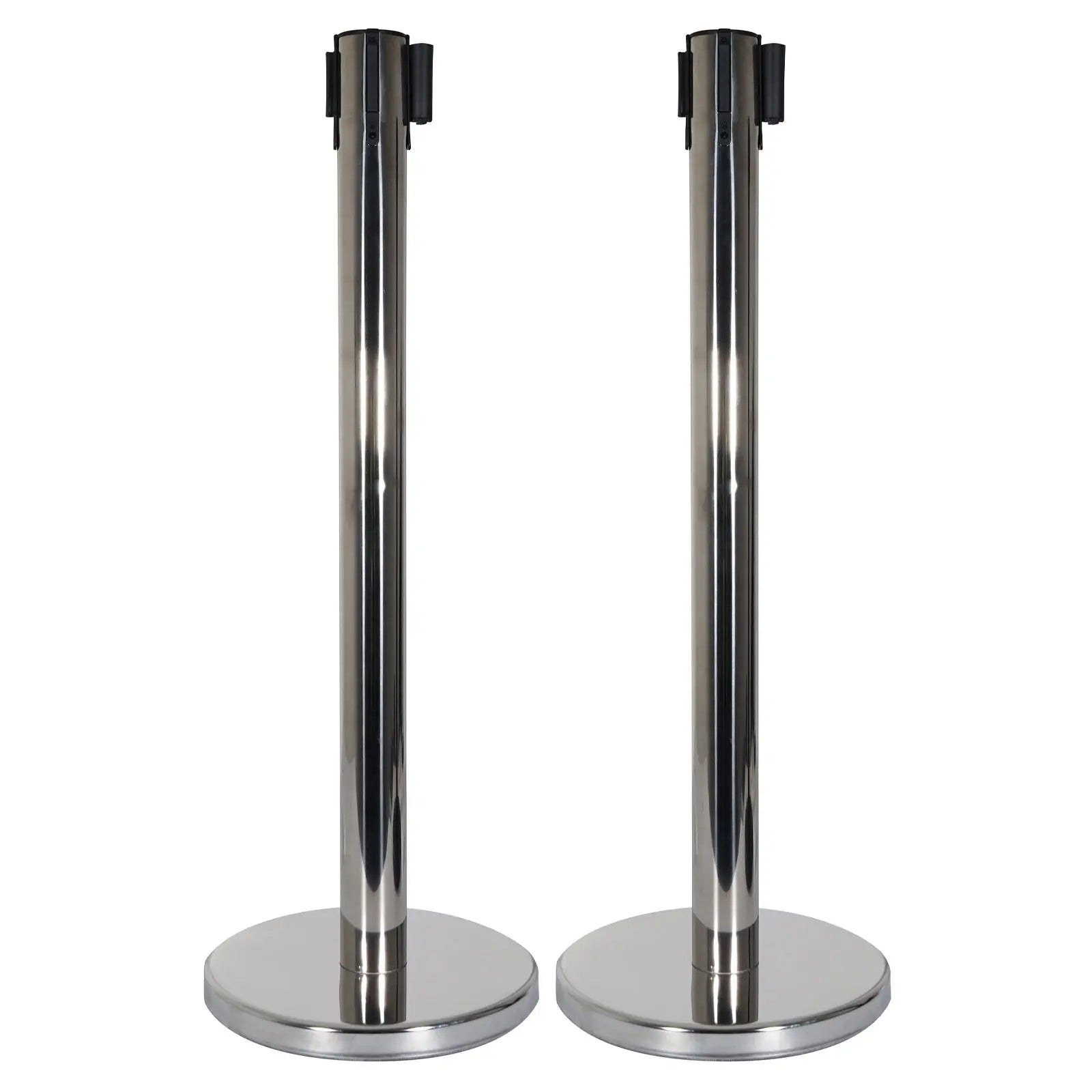 Elumen8 Retractable Barriers - Chrome Pole / Black Strap (Set of 2)