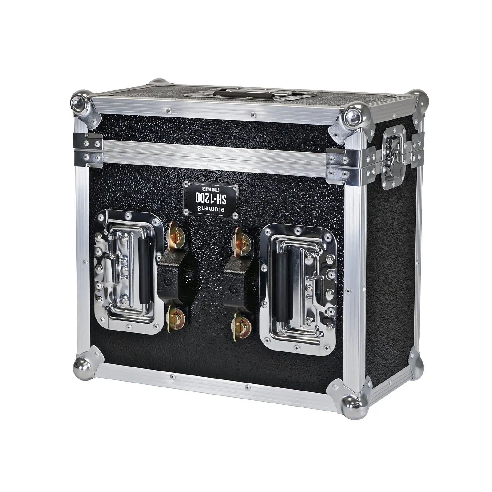 Achieve a professional haze effect in seconds with the Elumen8 SH-1200 Stage Hazer. Powered by a 1200W heater and housed in a durable flight case this robust machine delivers 12000 cu.ft of haze per minute making it ideal for theatre productions concert stages and live events. Its quick 1-minute warm-up time and 4-litre fluid tank mean less downtime and more continuous operation especially when paired with Equinox light or dense water-based haze fluids.An easy-to-use LCD display offers complete control over timer continuous and manual haze settings while 2 DMX channels integrate seamlessly into your professional lighting rig. Designed for reliability and convenience the SH-1200 features quick-release omega clamps for rapid setup and powerCON TRUE1 for secure power connections. Whether you’re on tour or hosting a one-off event this stage hazer ensures a consistent high-quality atmosphere that enhances your lighting effects. 1200W heater Haze output: approx. 12000 cu.ft per minute Warm-up time: approx. 1 minute Tank capacity: 4 litres DMX channels: 2 Timer manual and DMX modes Quick release omega clamps included 4 button menu with LCD display powerCON TRUE1 input 3-Pin XLR input/output 5-Pin XLR input/output Use with water based haze fluid