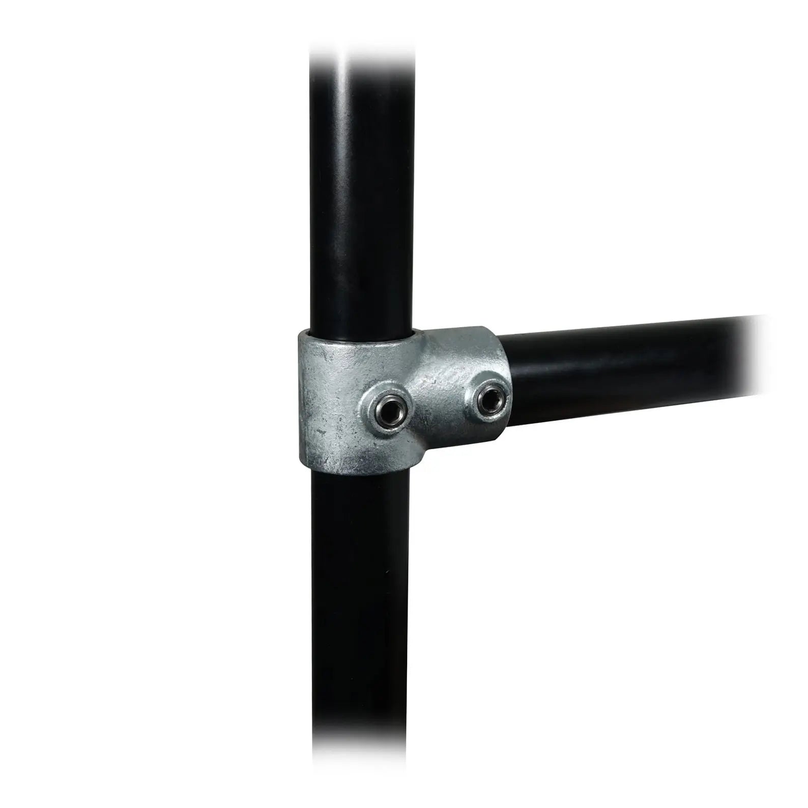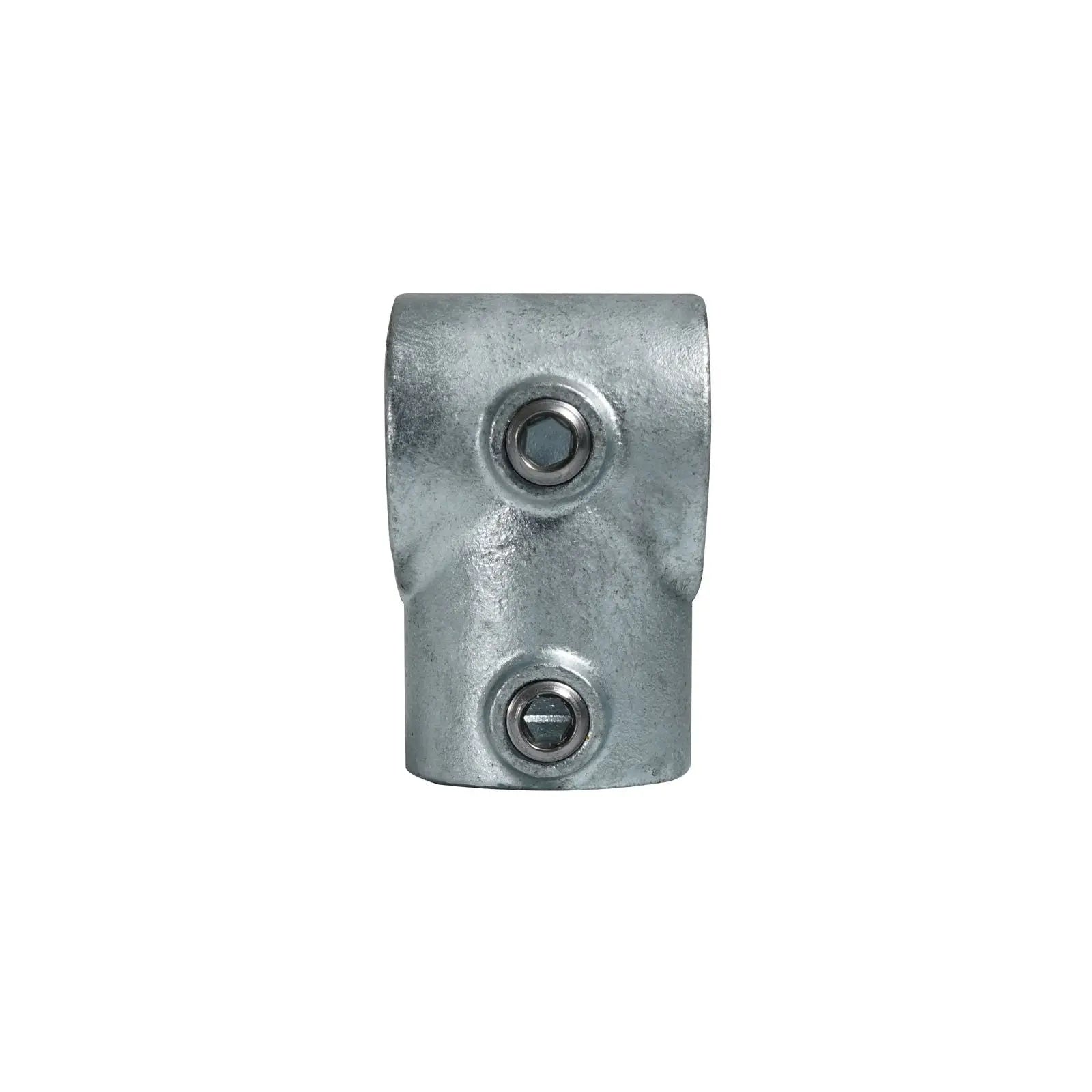 Elumen8 CLAM201 Short Tee Key Clamp (101-HDG).Key clamps are designed to secure and connect 48.3mmØ tubes quickly and easily. The wide range of options available enables users to create a huge variety of configurations including lighting grids studio frames staging and exhibitions stands. The short tee key clamp allows for a 90° T connection between two tubes. Ideal for use in the joint between end post and lower rail(s) or as a top T joint on a guardrail/handrail. Malleable cast iron construction with hot dip galvanised finish Designed to fit 48.3mmØ tubes Simply secured via an Allen key (not included) Please note: Not suitable for use in the construction of scaffolding frameworks Grub screws included