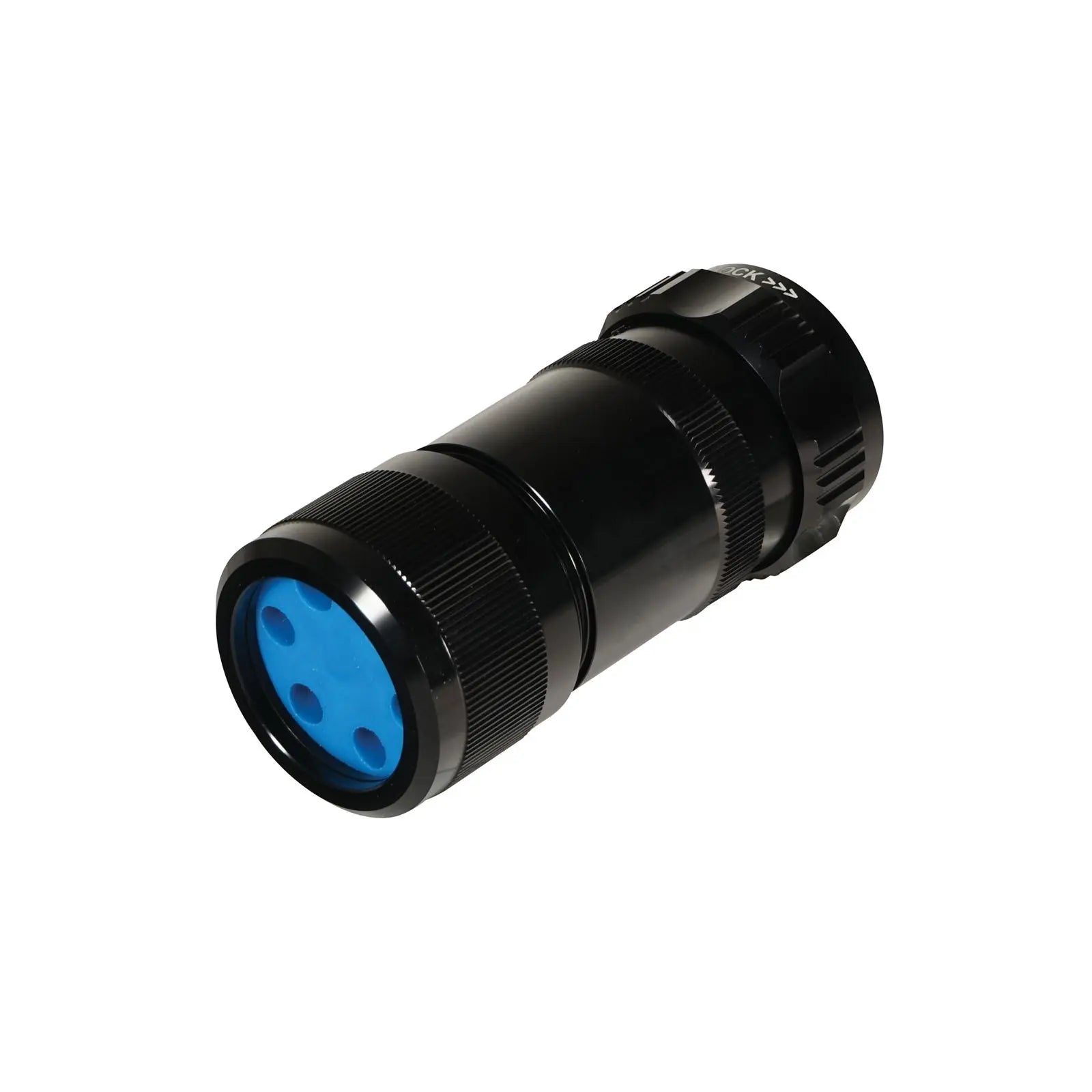 The eLumen8 Showsafe range of UL certified Socapex connectors have been manufactured to deliver the highest levels of quality reliability and safety for stage lighting connections. The super robust construction of these multi-pin devices ensures reliable operation for AV professionals. The rugged plug design has been tailored specifically for professional touring and stage lighting applications and all products are fully Socapex SL419 compatible. Showsafe 19-Pin plugs are sealed to IP67 protection when mated making them water and dust proof for festivals worldwide. The sand of Benicassim? The mud and rain of Glastonbury? No problem. Model reference: P19-LM-S-SPR-BK-NUM Inline male 6 x 10mm (1.5mm² cable) UL approved to UL1977 standard 100% UK manufactured and assembled Amphenol Socapex SL419 compatible 19-Pin connectors are all rated at 25A Multi-point gold plated contacts Integral insulation sleeves