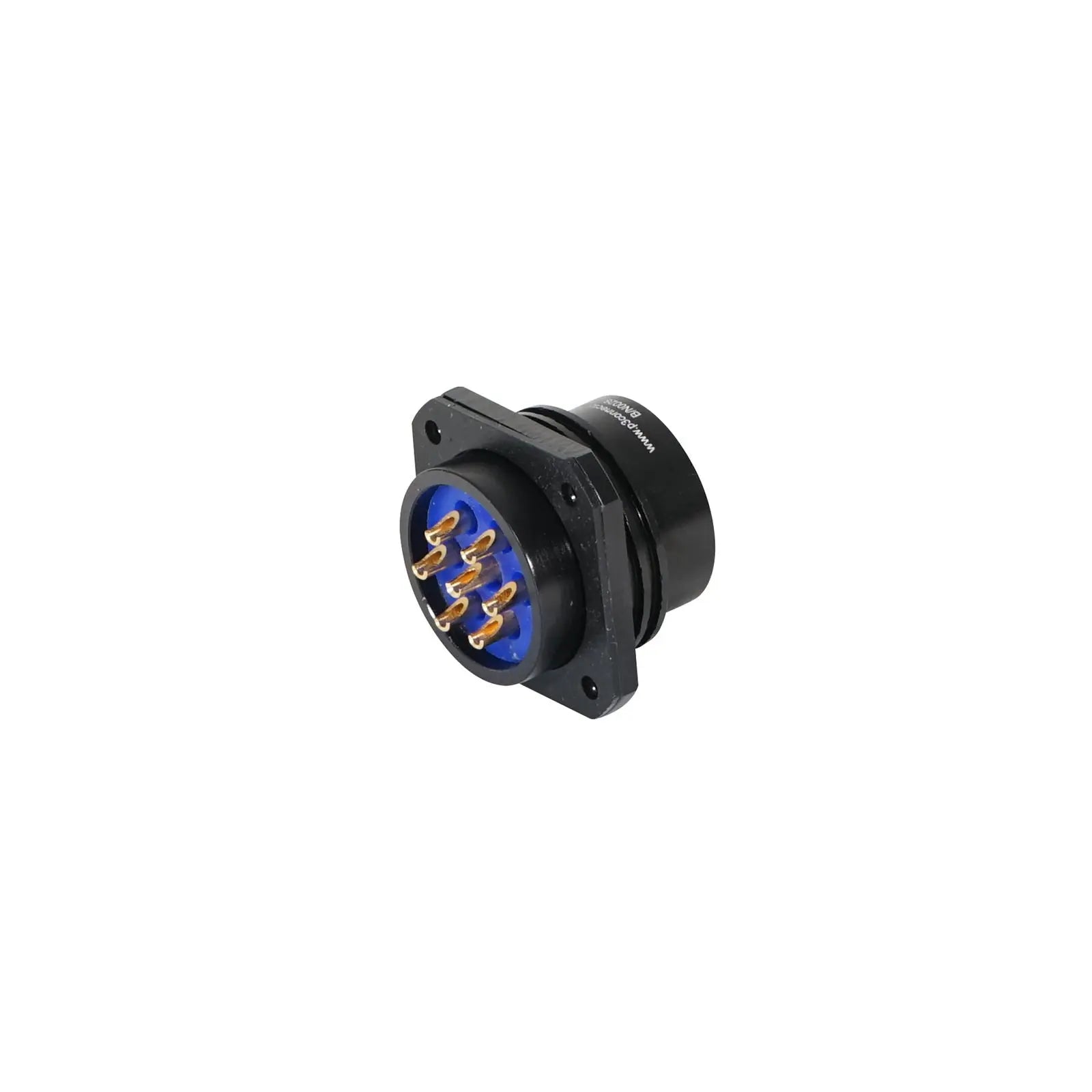 The eLumen8 Showsafe range of UL certified Socapex connectors have been manufactured to deliver the highest levels of quality reliability and safety for chain hoist motor control connections. The super robust construction of the multi-pin devices ensures reliable operation for AV professionals. The rugged plug design has been tailored specifically for professional touring and stage lighting applications and all products are fully Socapex compatible. Showsafe 7-Pin plugs are sealed to IP67 protection when mated making them water and dust proof for festivals worldwide. The sand of Benicassim? The mud and rain of Glastonbury? No problem. Model reference: P7-PF-S-UL Panel/Chassis mount female socket UL approved to UL1977 standard 100% UK manufactured and assembled Amphenol Socapex compatible 7-Pin connectors are all rated at 25A Multi-point gold plated contacts Integral insulation sleeves