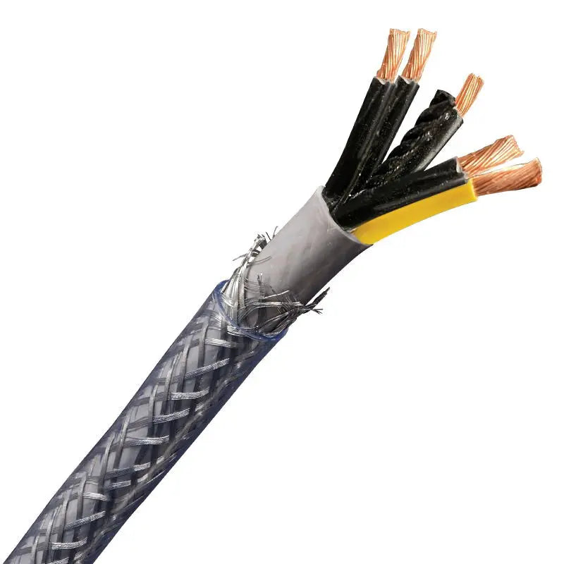 SY cable is designed to be used as interconnecting cable between fixed and mobile equipment in conveyors assembly lines production lines and machine tool manufacture where the galvanised steel wire braid armour gives excellent mechanical protection. It is commonly used in a wide number of industries including building and construction rail and transport etc. This cable is also used by electricians in certain fixed installations where only light mechanical stress may occur. This cable is best suited to conditions indoors; it can also be used outdoors but should be protected. Please note: Shipping charges may apply Flame retardant according to VDE 0250 and BS EN/IEC 60332-1 standards Conductor: Stranded copper conductors Insulation: PVC Bedding: PVC Armouring: Galvanised steel wire braid armour Sheath: Transparent PVC Operating temperature range -15 to 70°C