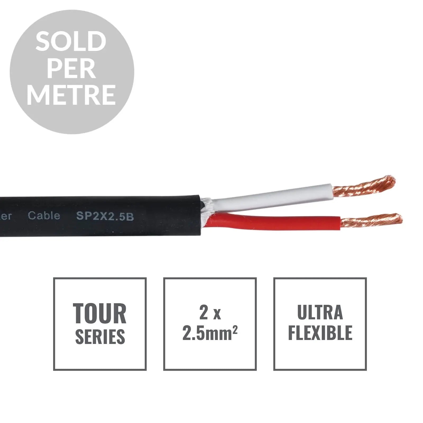 Touring quality 2 core loudspeaker cable for medium power rental applications. The cable is constructed from two multi-strand oxygen-free cores within a super flexible PVC outer jacket. The loudspeaker cable can be coiled and re-coiled multiple times whilst retaining its flexibility and shape. Each internal core is made up from seven cores each one featuring 45 strands of oxygen-free high grade copper. Sold per metre (Please specify your requirements in the notes section when ordering eg 20m in 1m cuts 50m in 10m cuts etc) 2 core loudspeaker cable Cotton filling for extra flexibility and shape retention Colour coding: White/Red