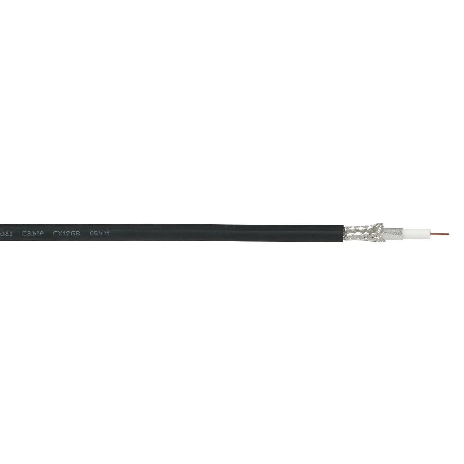 RG-59 style coaxial cable designed for analogue or HD-SDI video signals up to 12Gbps commonly used for high definition video signals in the event production sector. The cable is constructed from a single oxygen-free copper core protected by both aluminium polyester foil and a tinned oxygen-free copper woven braid designed to reject interference. The cable is finished with a low memory super flexible outer PVC jacket for the ultimate flexibility. 75Ω impedance Solid oxygen free copper core Shield 1: Aluminium foil 125% coverage Shield 2: Braided screen 95% coverage Super flexible PVC outer jacket Conductor: 1 x 0.23mm² (24AWG) Dielectric: 1.2mm Polyethylene foam Outer diameter: 6mm Operating temperature range: -20 to +80°C