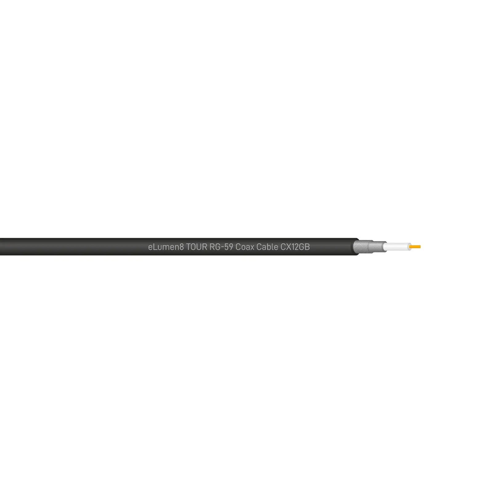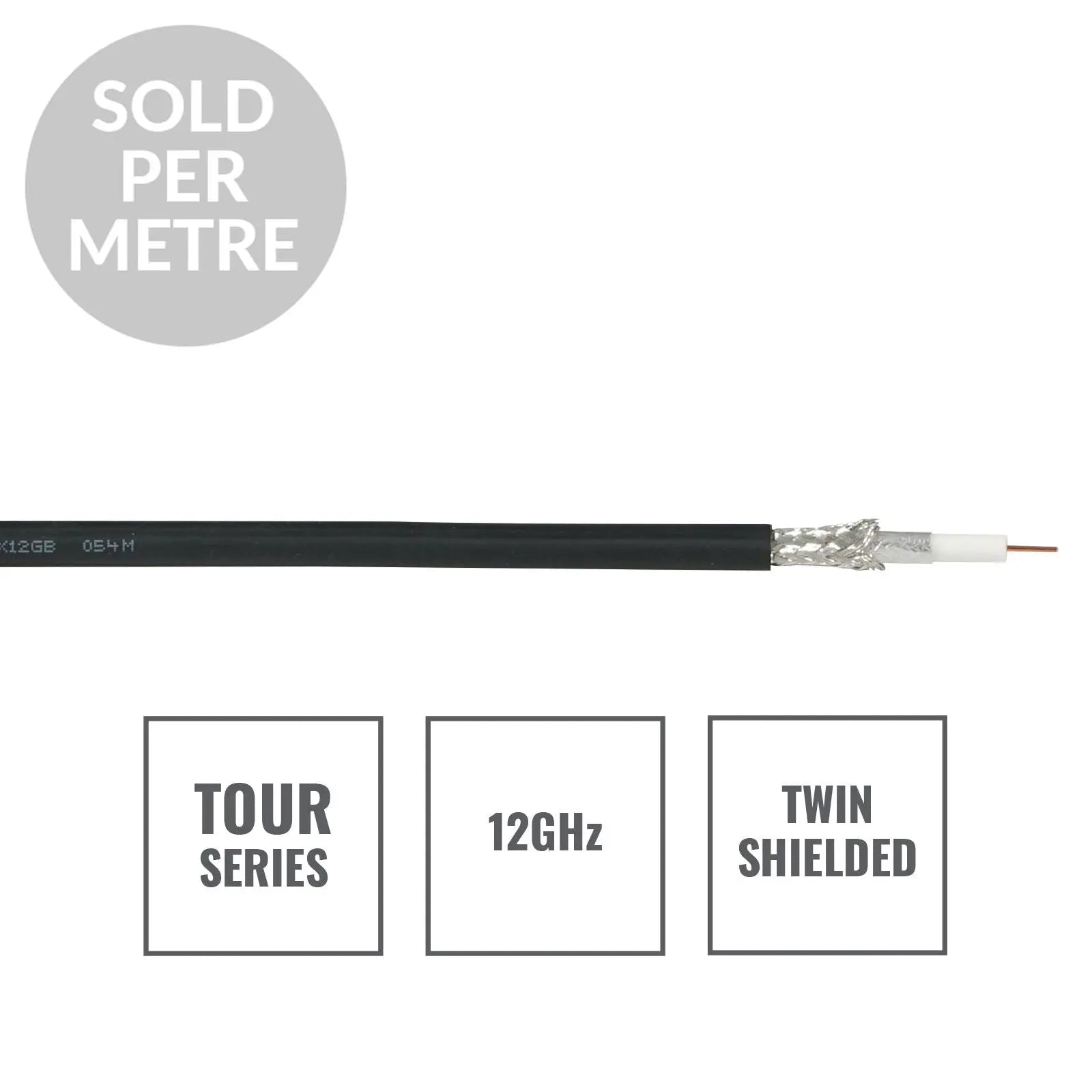 RG-59 style coaxial cable designed for analogue or HD-SDI video signals up to 12Gbps commonly used for high definition video signals in the event production sector. The cable is constructed from a single oxygen-free copper core protected by both aluminium polyester foil and a tinned oxygen-free copper woven braid designed to reject interference. The cable is finished with a low memory super flexible outer PVC jacket for the ultimate flexibility. Sold per metre (Please specify your requirements in the notes section when ordering eg 20m in 1m cuts 50m in 10m cuts etc) 75Ω impedance Solid oxygen free copper core Shield 1: Aluminium foil 125% coverage Shield 2: Braided screen 95% coverage Super flexible PVC outer jacket Conductor: 1 x 0.23mm² (24AWG) Dielectric: 1.2mm Polyethylene foam Outer diameter: 6mm Operating temperature range: -20 to +80°C