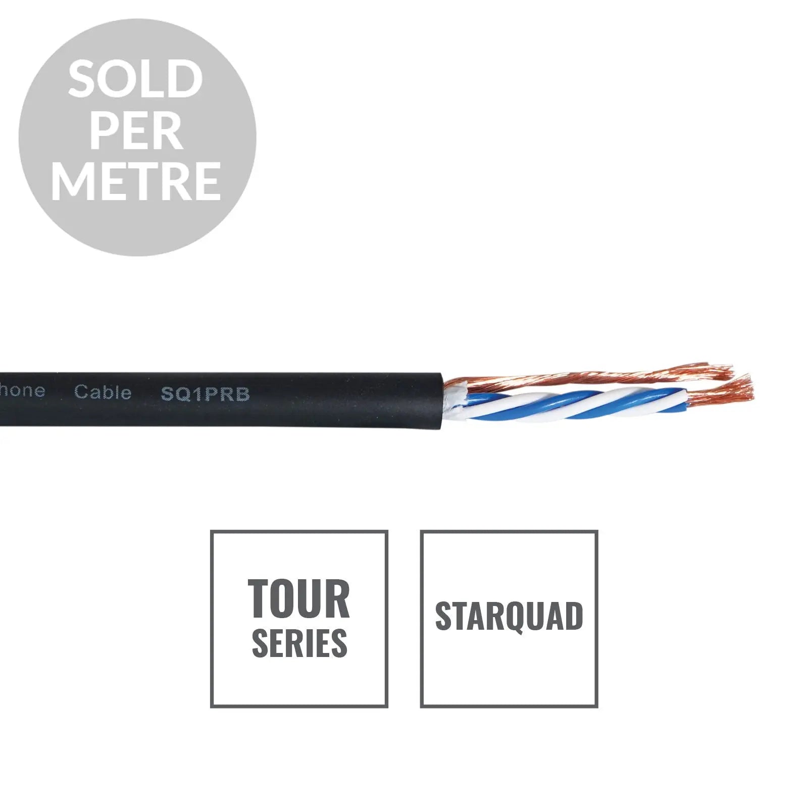 Touring quality 4 core screened audio cable suitable for balanced microphone and line level connections. The cable is constructed from four oxygen-free cores protected by an oxygen-free copper spiral screen and is finished with a super flexible PVC outer jacket. The starquad format offers superior RFI and EMI interference rejection when compared to standard 2 core screened cables. Sold per metre (Please specify your requirements in the notes section when ordering eg 20m in 1m cuts 50m in 10m cuts etc) 4 core screened audio cable Spiral copper screen 95% coverage Cotton filling for extra flexibility Colour coding: White/Blue